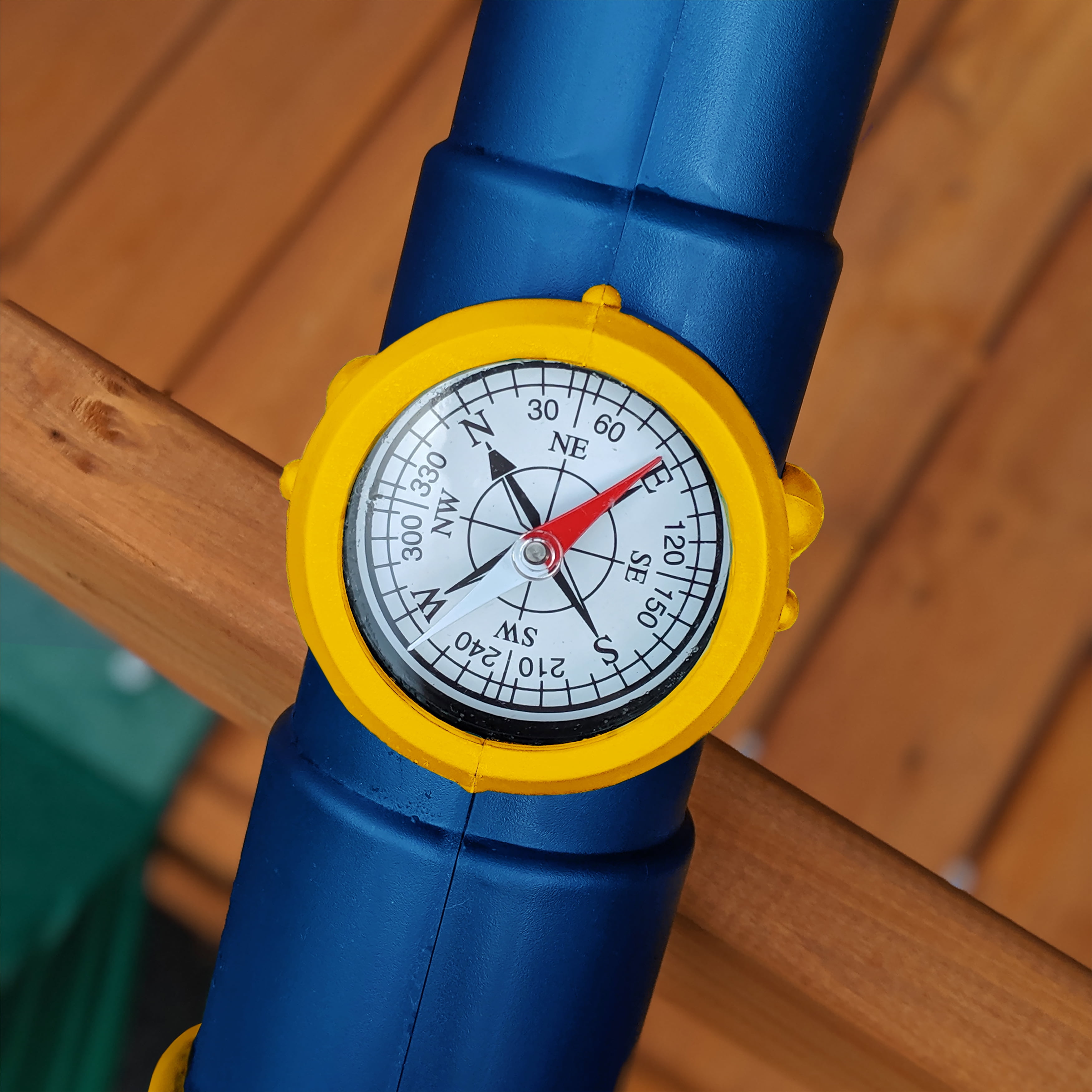 Your child will love exploring new worlds with this colorful blue and yellow plastic Telescope with working compass. This play telescope is non-magnifying and intended for imaginative play. Easily attaches to the play deck’s railing. Includes hardware and mounting instructions.