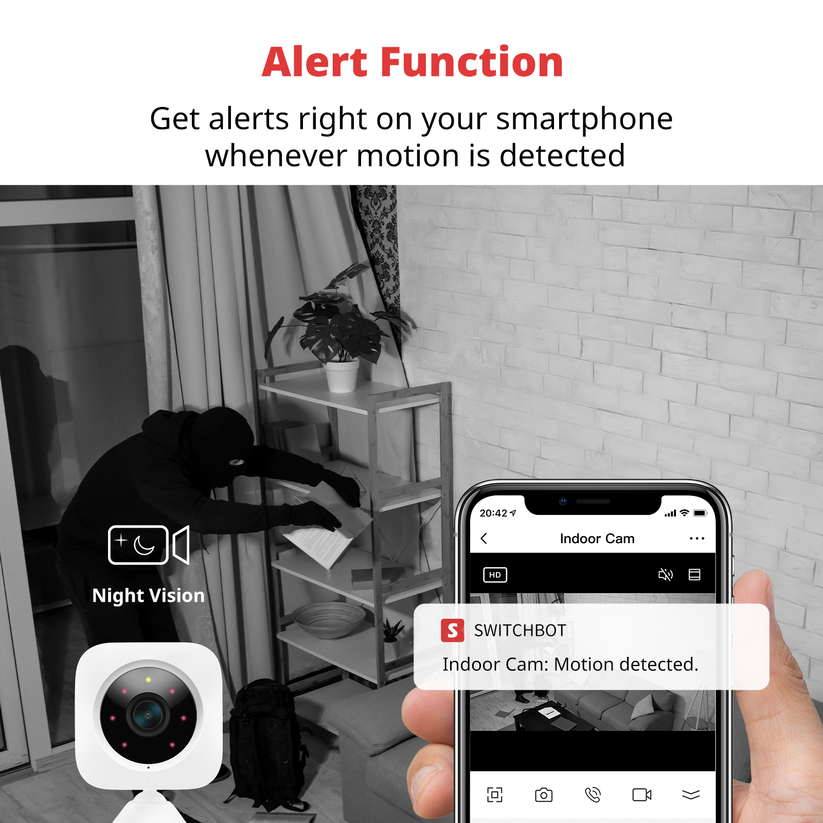 SwitchBot Indoor Camera is a smart Wi-Fi camera for home security, it is also used for baby cameras and pet cameras. It has a 130° wide-angle 1080p for watching your baby in real-time. Infrared night vision and Dual Storage make sure you never miss anything. As a security camera, it will alert when detected someone moved. Using the video playback feature, you can stay on top of things without constantly monitoring the app.