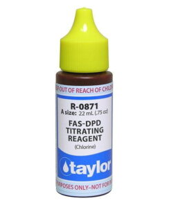 - Test kit reagents, for your Taylor liquid solution pool water test kit.