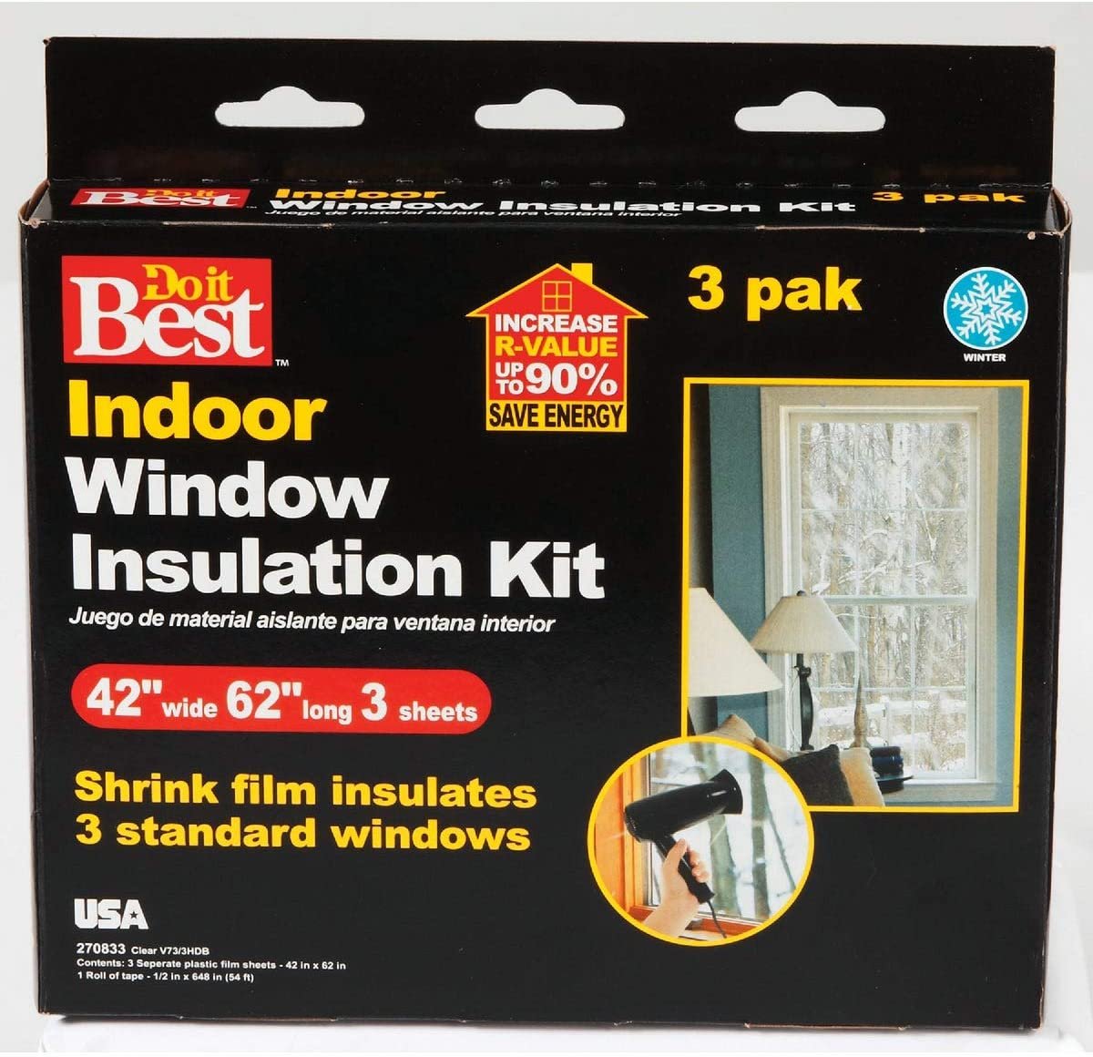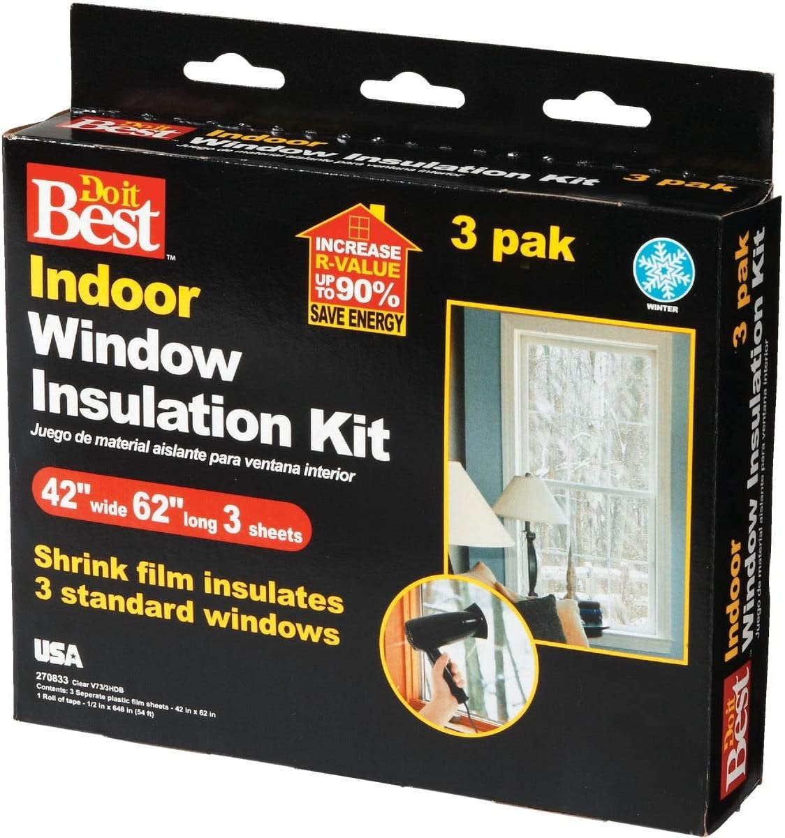 Vinyl sheeting, easy DIY application requires only scissors and a hair dryer. Heated with portable hair dryer, vinyl sheeting shrinks to form see-through weather seal around window. Stop cold drafts and prevent frosty Windows. Vinyl sheet mounts to frame via double-faced tape. Increase R-value up to 90%. safe application to aluminum, painted or varnished wood, or vinyl clad window molding.