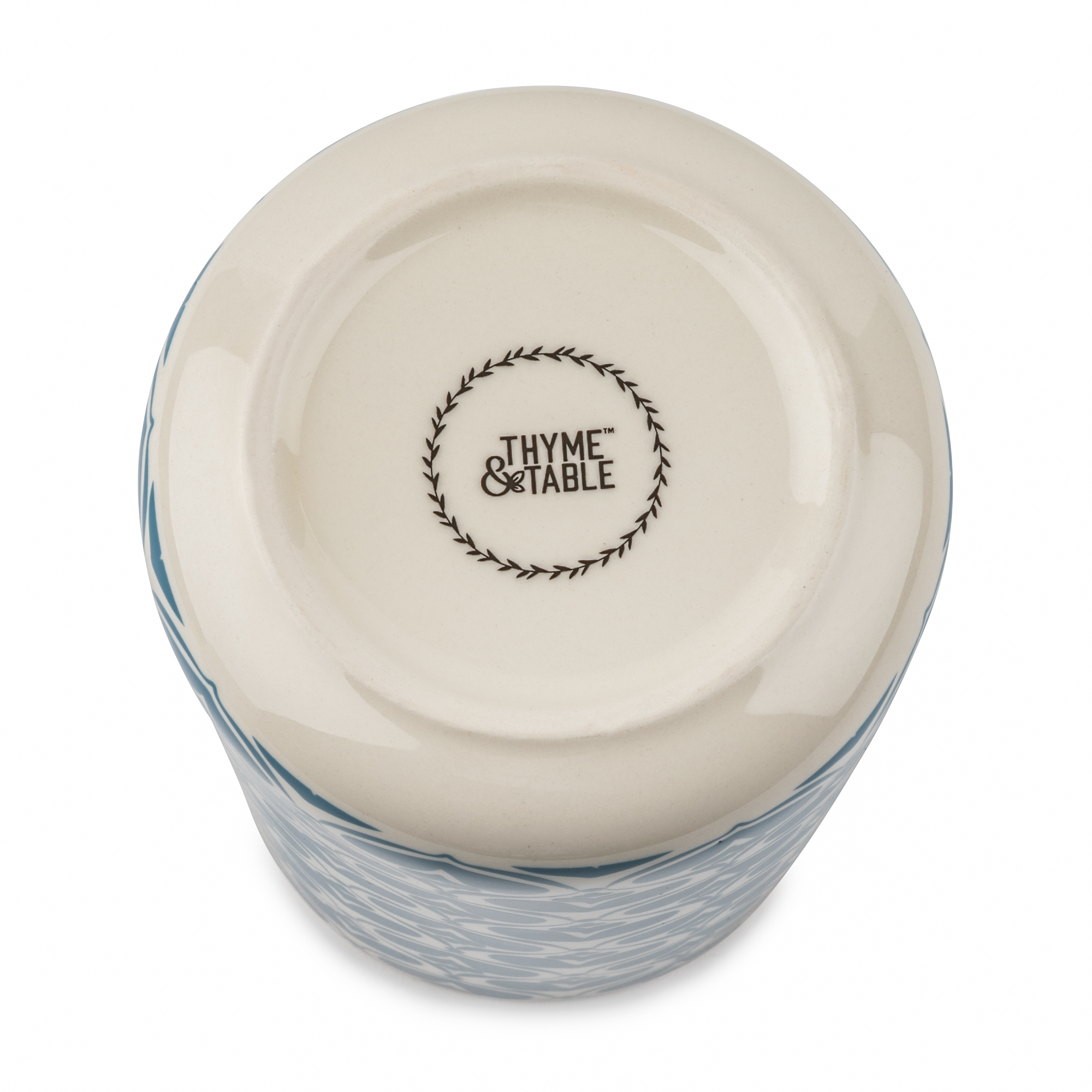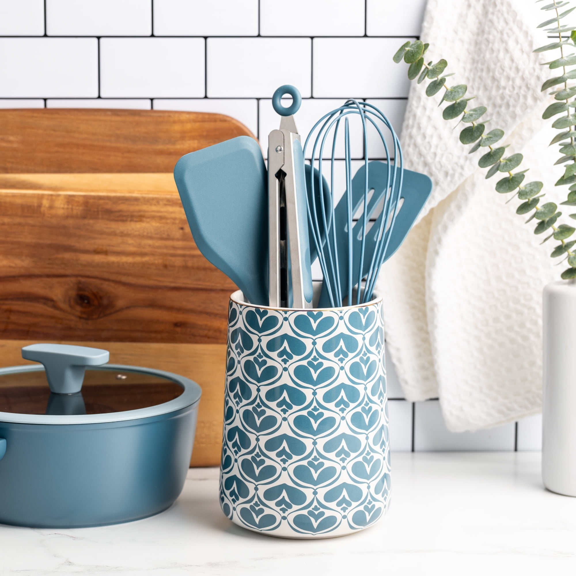 Thyme & Table Ceramic Utensil Holder, Heart Pattern is made of durable stoneware and perfect for holding wooden spoons, spatulas, tongs, and more within reach while adding a pop of personal style to your kitchen counter. Care & Use: Hand wash before first use. Wash in warm water with dish soap and a soft sponge. Dishwasher safe