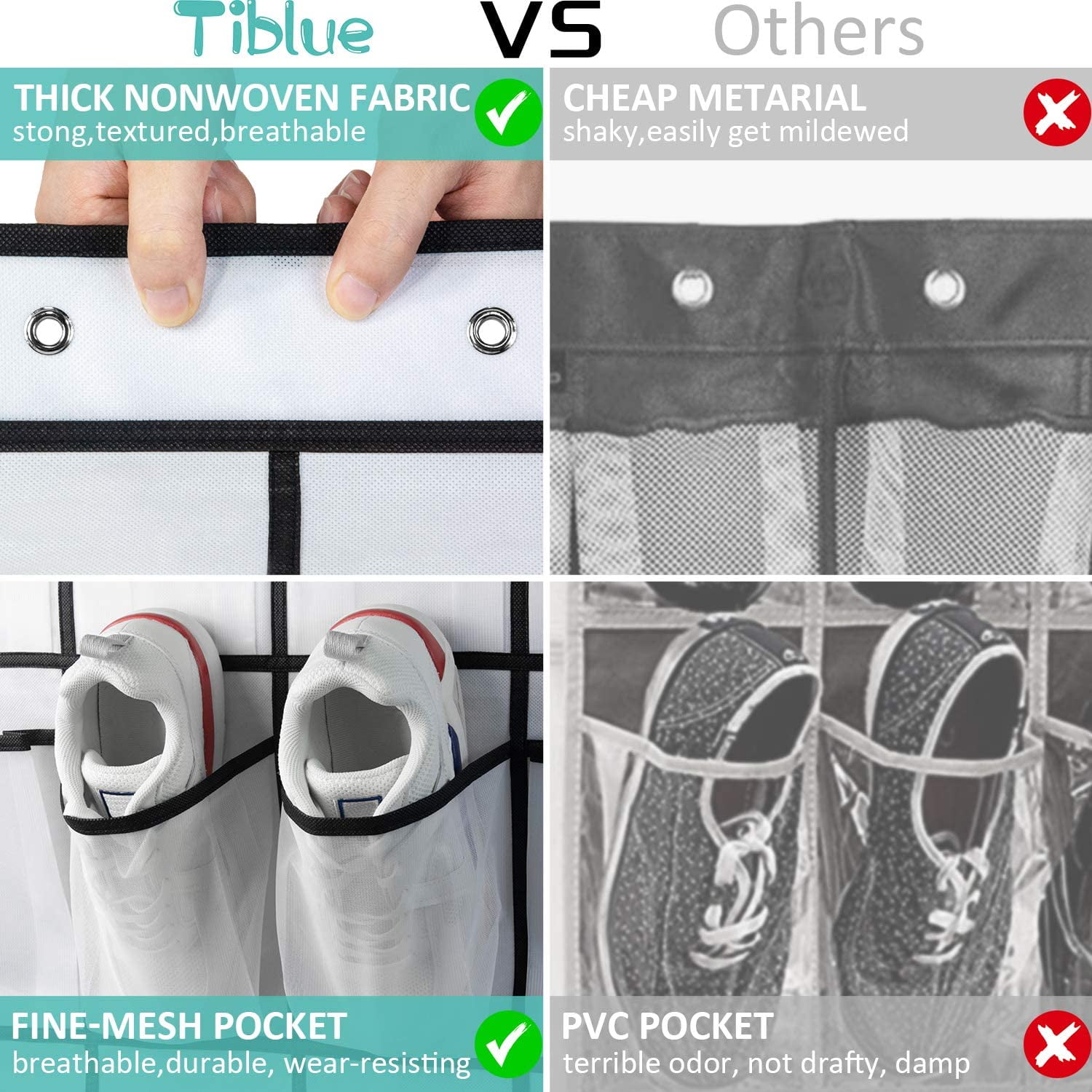 - DURABLE & HIGH-QUALITY:Made of premium and thickened non-woven fabric, the hanging door shoe holders are designed for long-lasting use and can hold up to 40 pounds, much more durable than other easily torn over-the-door organizer on the market.