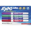 Enjoy flexible writing options with this 4-pack of TRU RED blue dry-erase dual-tip markers.Fill whiteboards with eye-catching information with this versatile marker. The chisel tip lets you easily make thick, bold lines, while the fine tip is ideal for smaller, more intricate designs and calculations. Square-format body provides added grip stability when writing. Indicator logos on both ends of this TRU RED blue dry-erase dual-tip marker make it easy to quickly identify which end you need without removing the cap. Write and erase on whiteboards, glass, and other dry-erase surfaces. Bold blue ink that erases cleanly. Low-odor formula ideal for classrooms, office, or home. White barrel designed with tip type graphic helps you quickly select the right dry-erase marker to use. Barrel shape not only provides a comfortable grip, but also keeps marker from rolling off your desk. Four per pack. AP certified non-toxic. Meets or exceeds ACMI standard. Wash easily away from skin and most children’s fabrics with soap and water. Sold as 4/Pack.