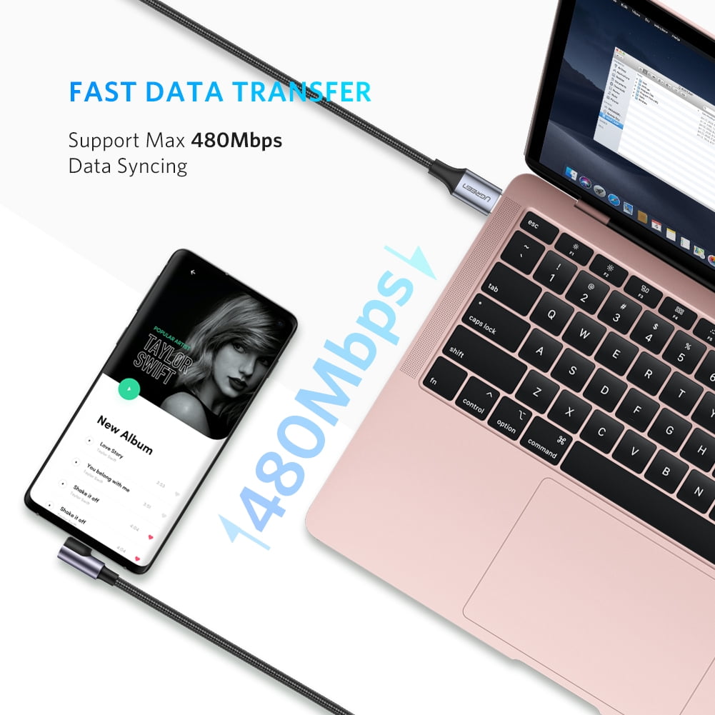 UGREEN USB-C to USB-C cable with an innovative 90 degrees L design, is much more convenient and more comfortable for playing games, watching videos, reading e-books when you lie on the couch or bed while charging.