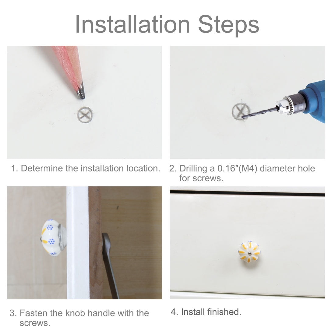 The crystal knobs shine in the light and make splendid visual effects in the room if several of them are used, so as to liven up the room and make it elegant.✔Attention: Be aware that the screws is 65mm(2.6inch), the board thickness should be 28mm(1.1inch)-31mm(1.2inch), you may need to purchase additional screws if the thickness of your furniture board not in this range.Knob Material – ceramic with hand painted floral, aluminium alloy. 6 pack ceramic cabinet knobs with fitting hardware, 2 kinds of installation methods.