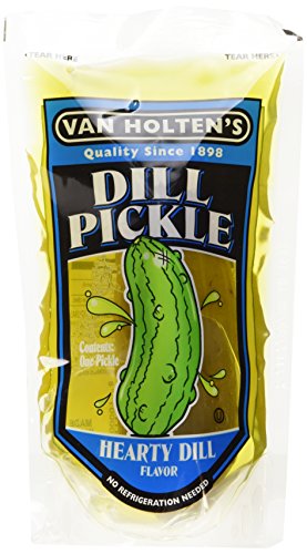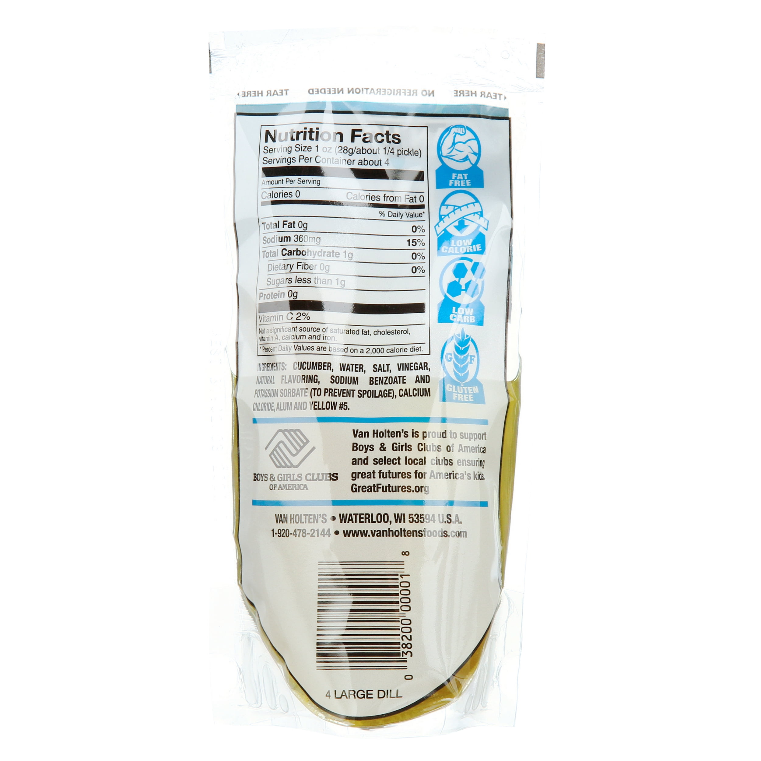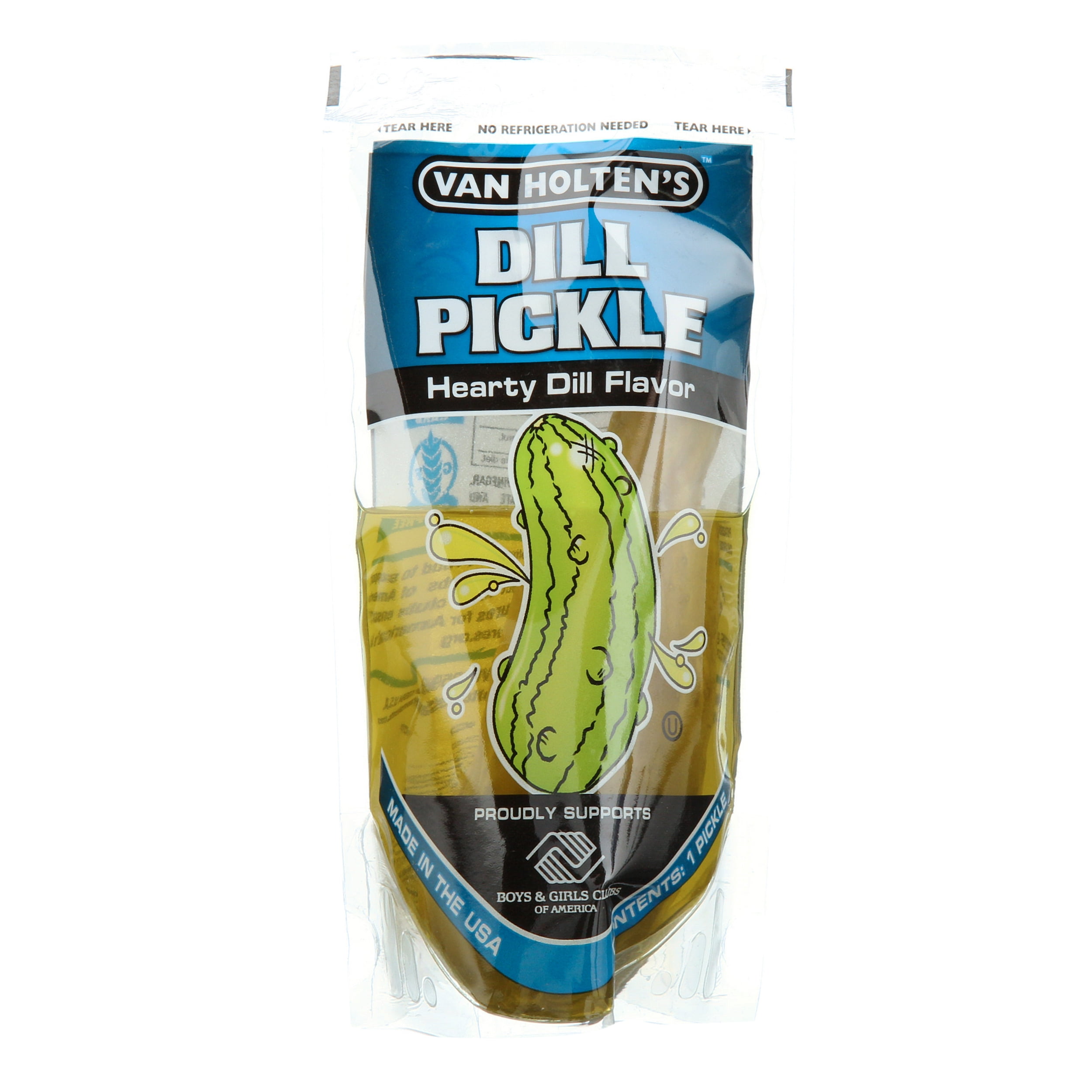 Individually wrapped Jumbo Dill Pickles. The pickle in the pouch is a great mess free and easy snack or a side dish. Enjoy! Van Holten’s proudly supports the Boys and Girls Club.