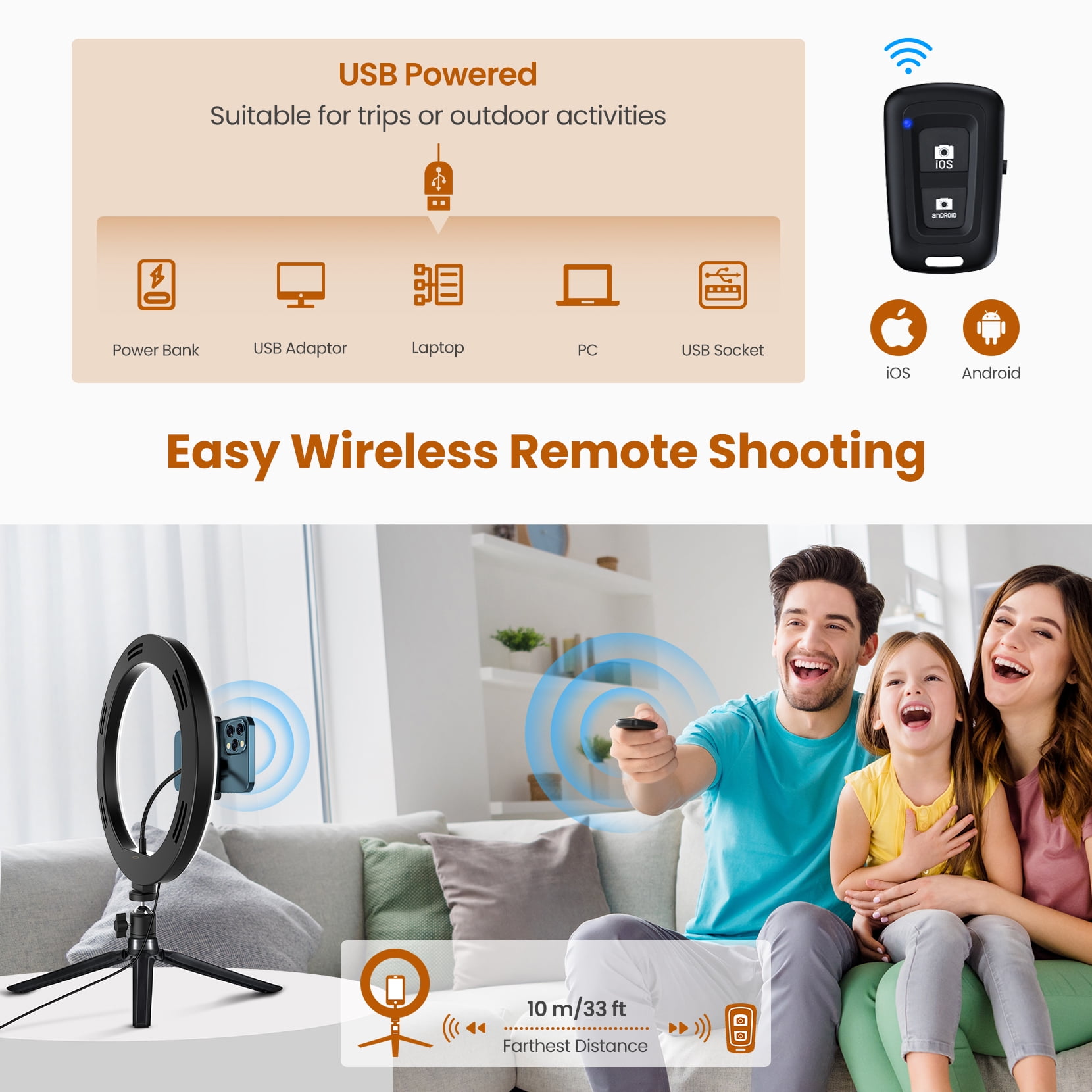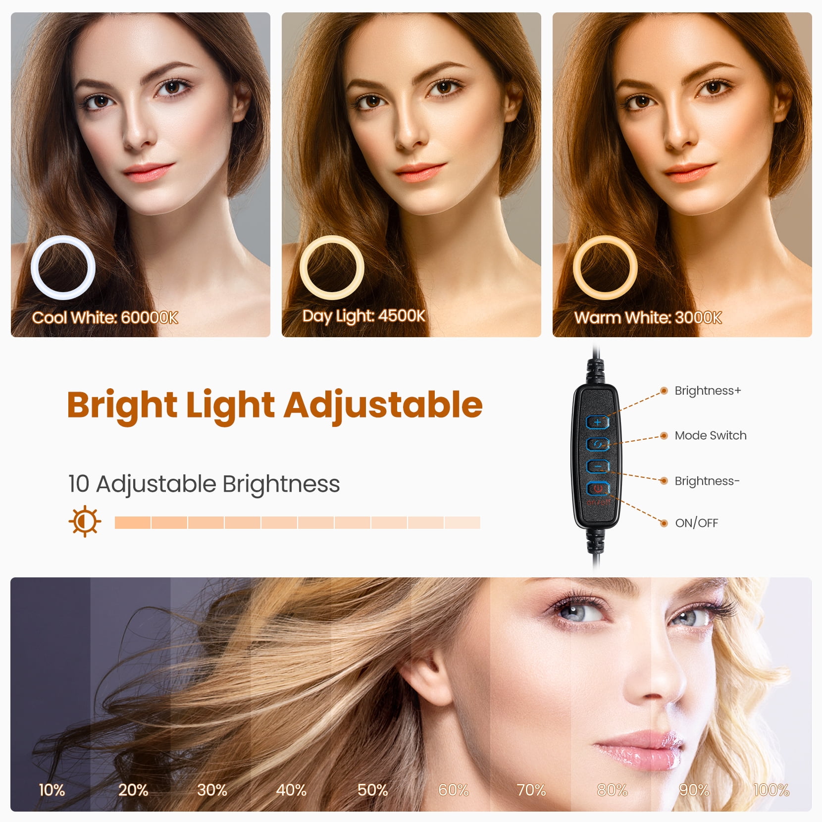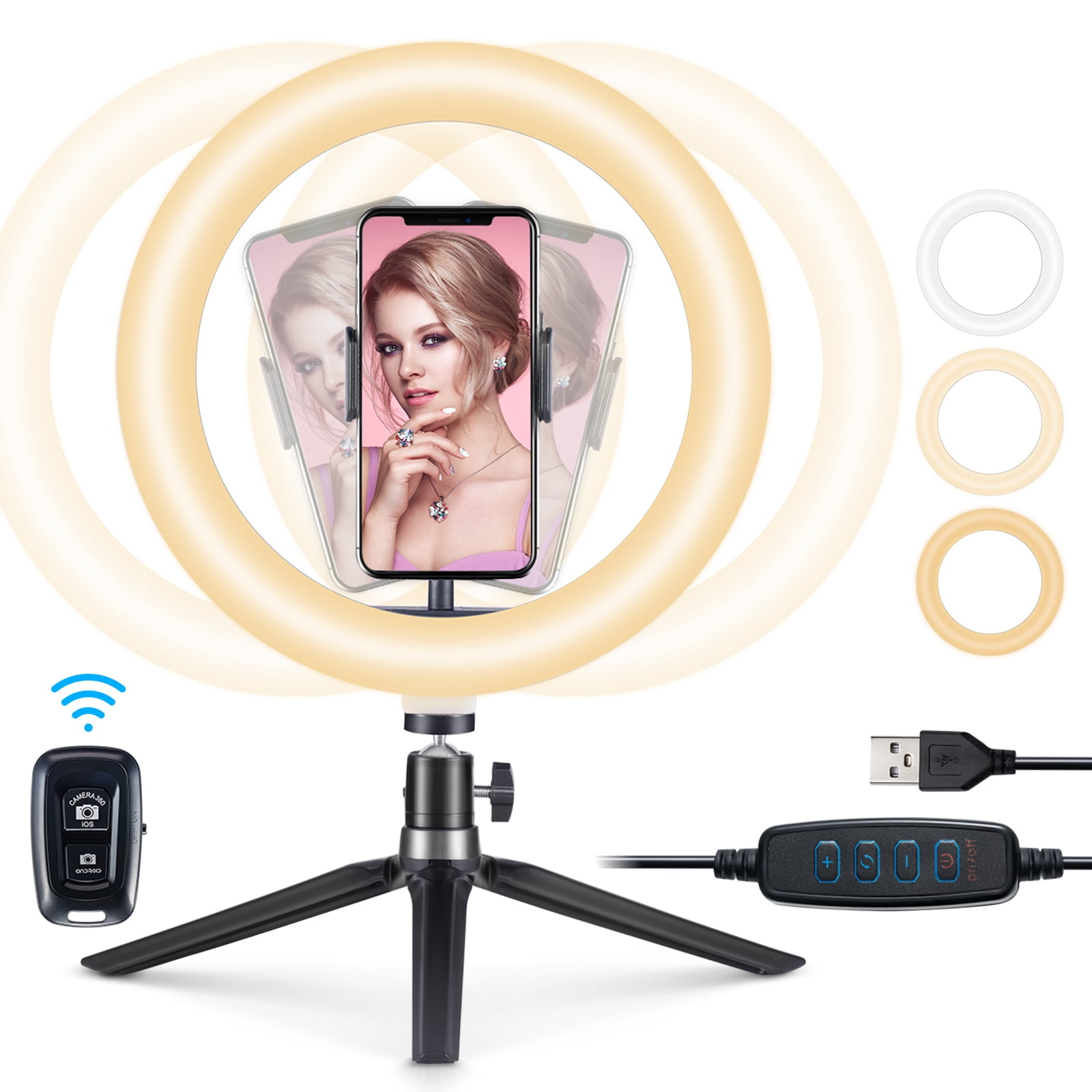 - 【Customize Perfect Lighting】With 120pcs lamp beads and 3 color temperature settings (Cold white/Warm white/Warm yellow) and 10 brightness levels, VictSing selfie ring light can be adjusted to any lighting effect you want for your videos or pictures.