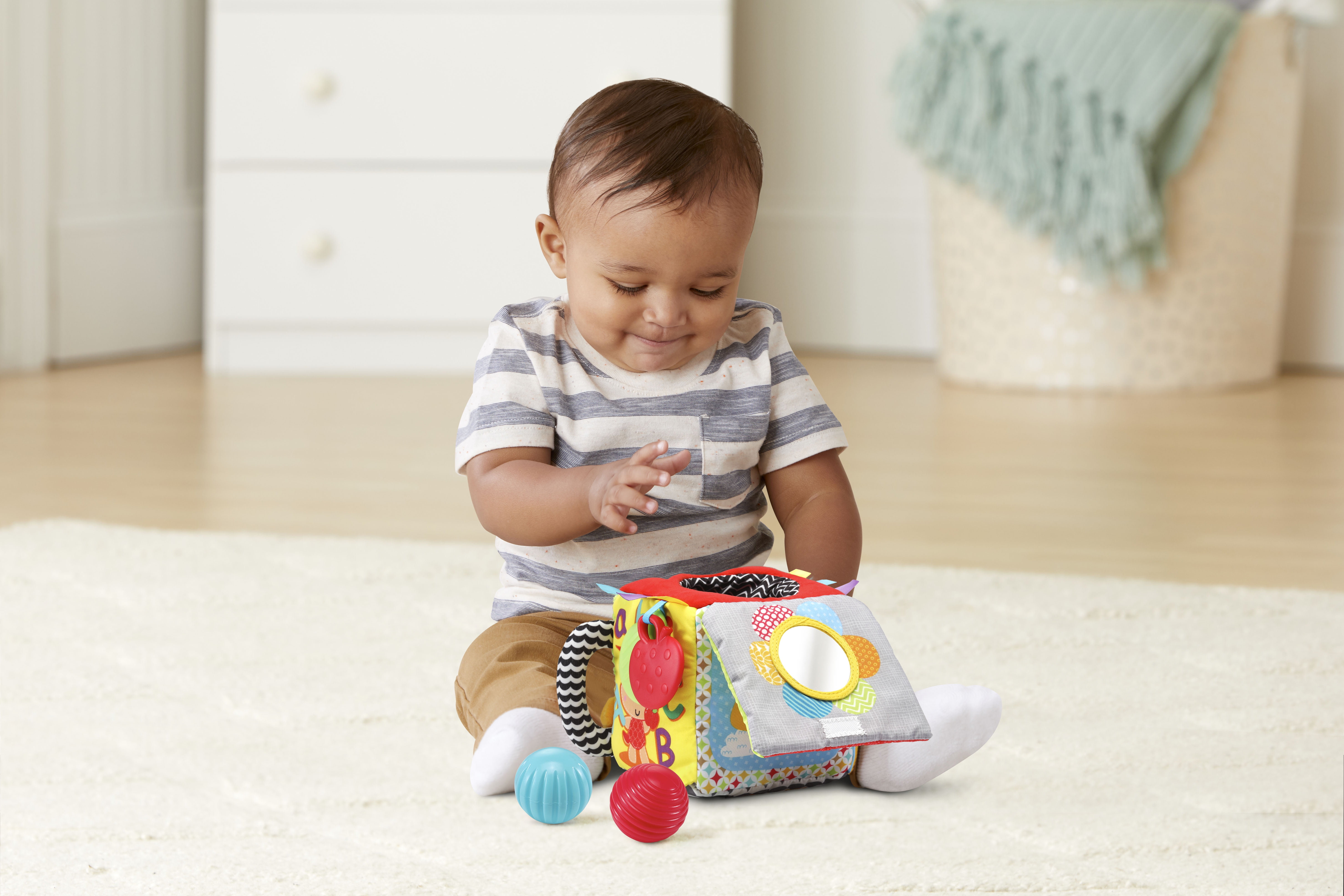 - This soft activity cube has six sides of tactile, visual and auditory play that keeps your baby engaged from infant to toddler