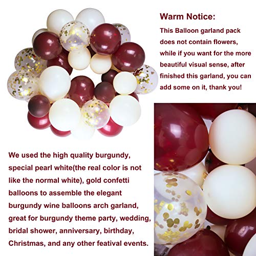 Wine Burgundy Balloon Garland Kit, 12′ 5′ Burgundy Balloons Gold Confetti Balloon 16 Feet Balloon Strip Tape Set for Burgundy Theme Party Wedding Decorations