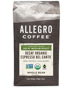 Allegro Coffee Decaf Organic Espresso Bel Canto Whole Bean Coffee, 12 Oz