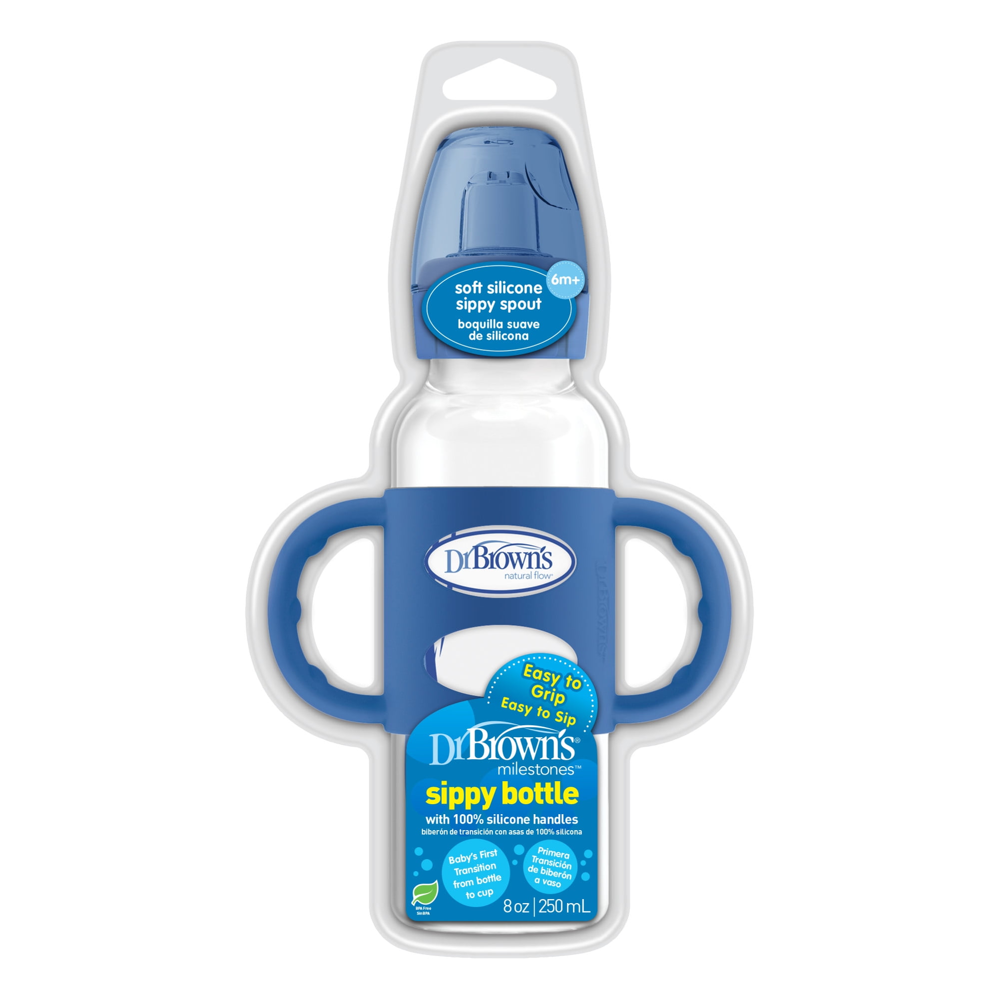 Dr. Brown’s Milestones Transitional Sippy Bottle with Silicone Handles – Blue – 8oz – 6m+