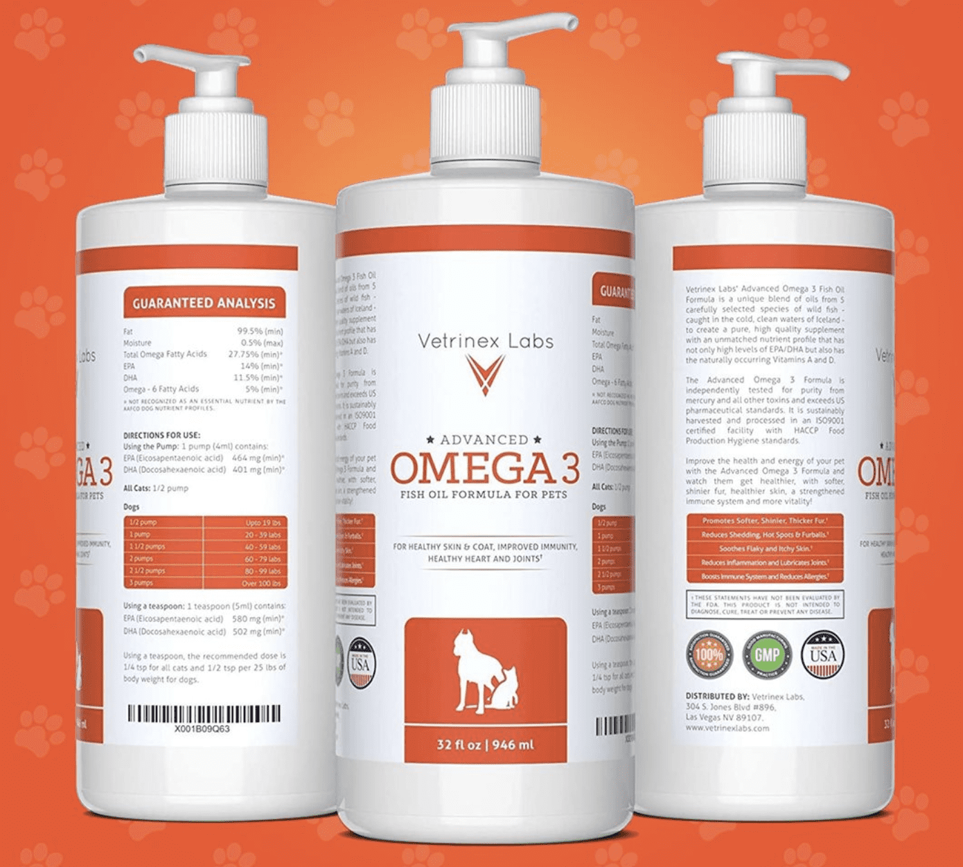 Pure Wild Caught Omega 3 Fish Oil for Dogs & Cats – Unique All Natural Formula Supports Healthy Skin & Coat, Joints, Heart & Immune System – Higher Levels of EPA & DHA than Salmon Oil (32 Oz)
