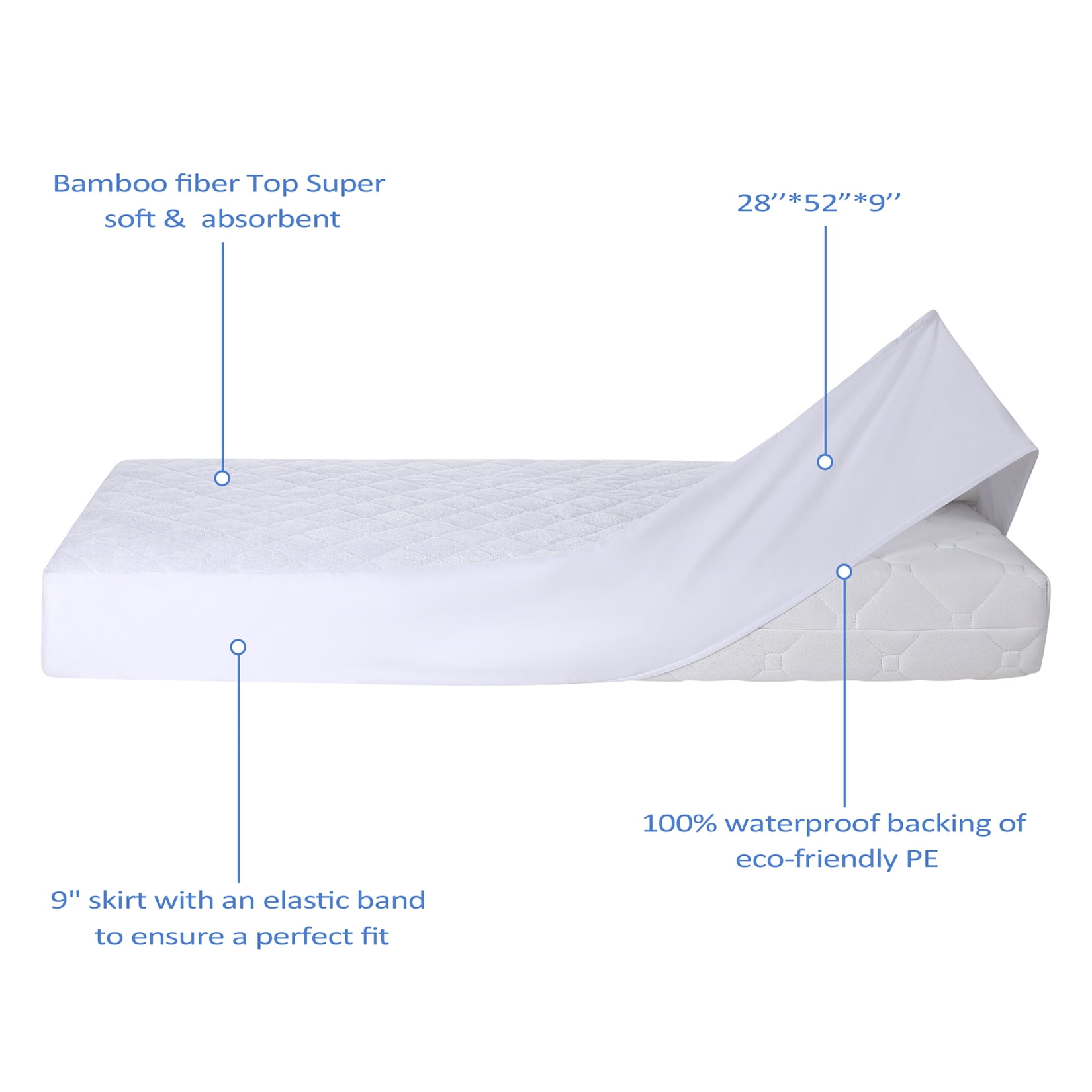 Lunsy Waterproof Crib Mattress Protector Bamboo Fiber Soft Breathable Baby Crib Fitted Mattress Cover,White