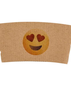 Restpresso Kraft Paper Heart Eyes Emoji Coffee Cup Sleeve – Fits 12 / 16 / 20 oz Cups – 50 count box