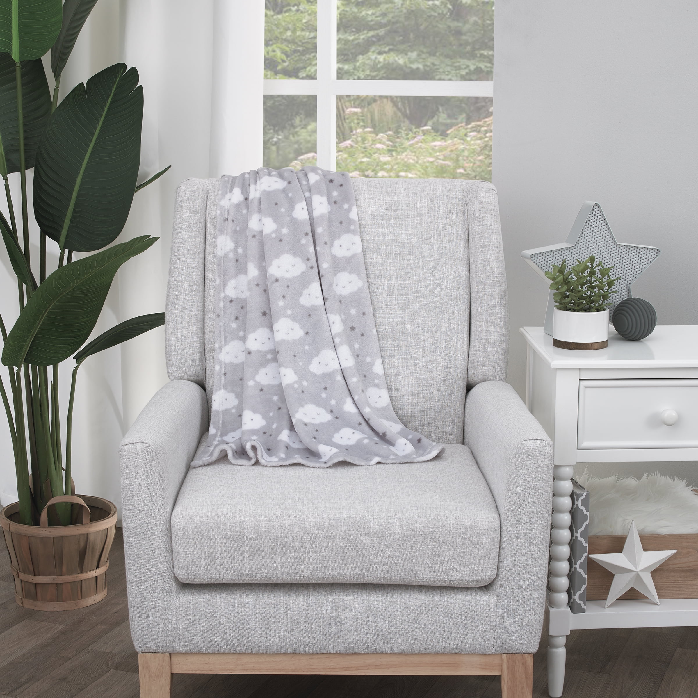 Little Love By Nojo Super Soft Gray And White Cloud Plush Baby Blanket