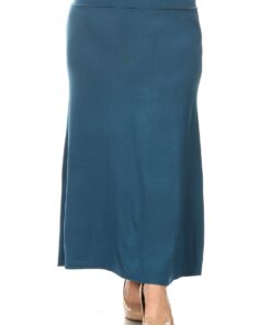 Women’s Basic Solid Foldable High Waist Maxi Skirt with Plus size US-Size