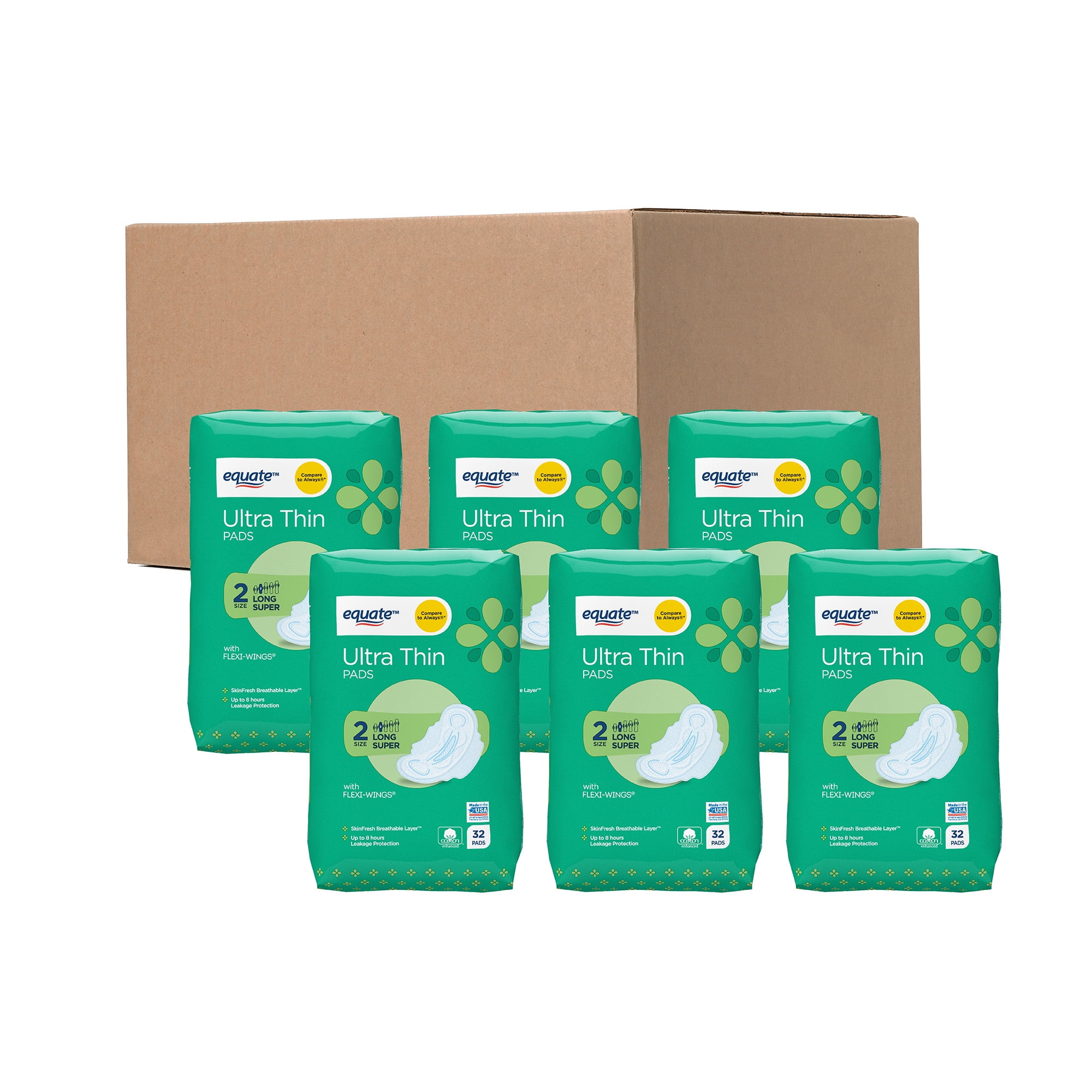 Equate Ultra Thin Pads with Wings, Long Super Unscented, 192 ct