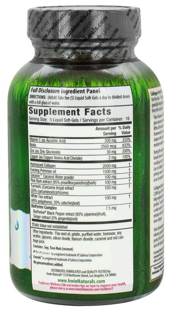 Irwin Naturals Deep Tissue Collagen-Pure with Coconut Water – Intensive Skin Nourishment – 80 Liquid Softgels