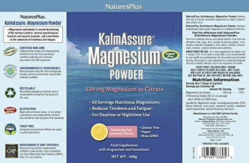 Nature’s Plus Kalmassure Magnesium Powder, Refreshing Pink Lemonade, 400 mg, 0.90 lb. (408 g)