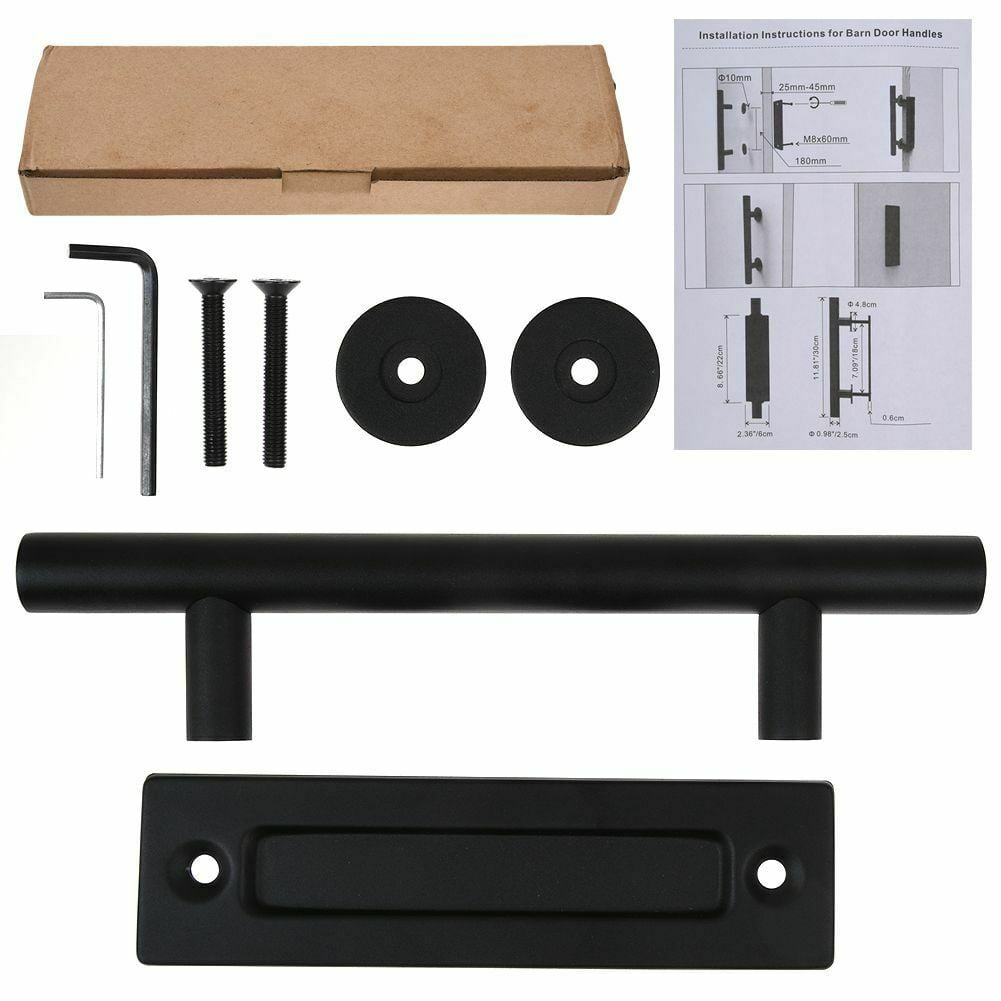 12′ Sliding Barn Door Pull Flush Handle Gate Hardware Set Iron Matte Black Heavy Duty for Wooden Aluminum Door