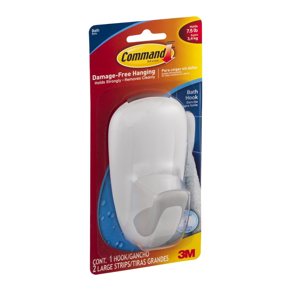 Command Bath Hook, White, Large, 1 Wall Hook, 2 Water Resistant Strips, Hang Robes or Loofahs