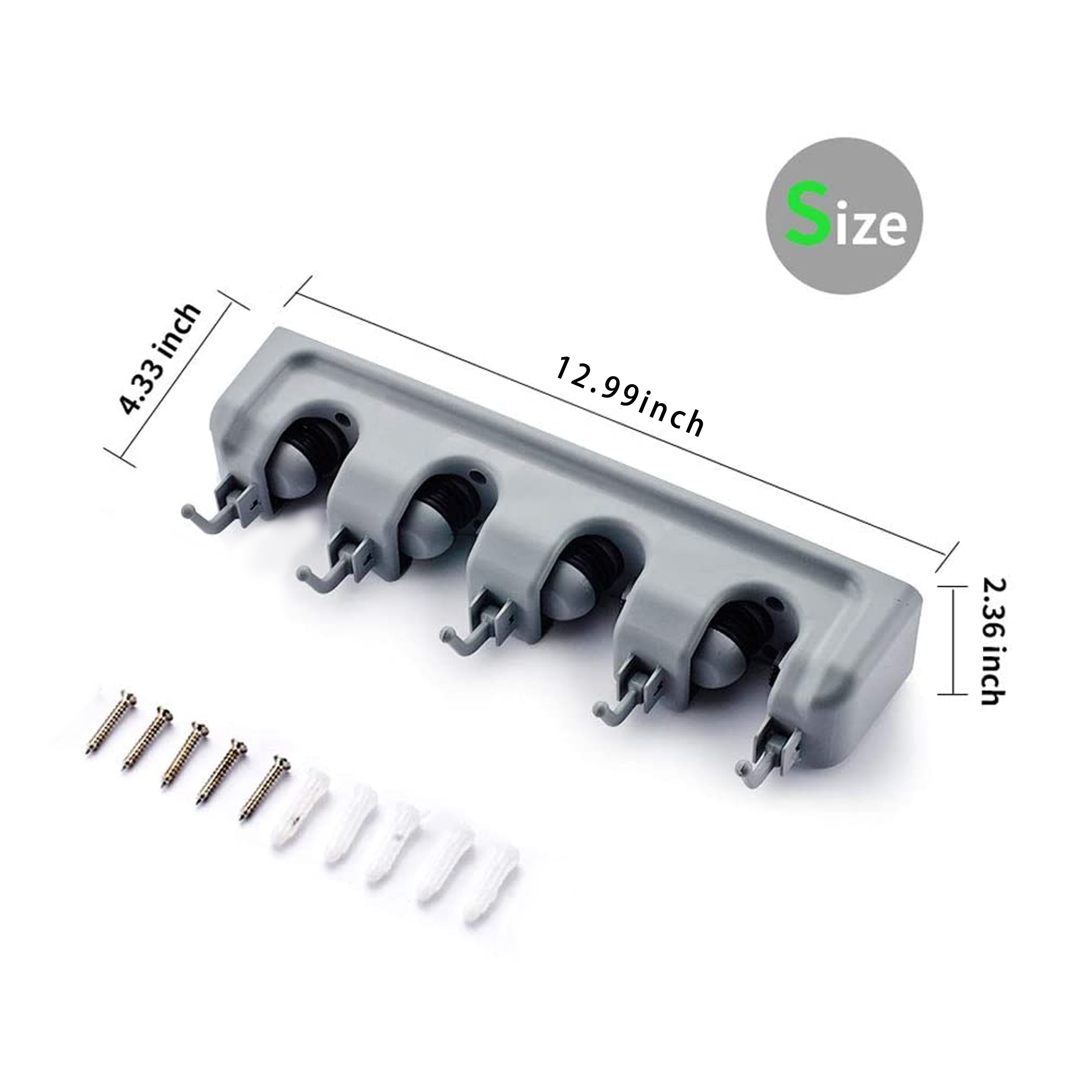 WZCPCV 2Pcs Broom Holder Wall Mounted Tool Rack,4 Position 5 Hooks for Kitchen Laundry Room Closet Garden