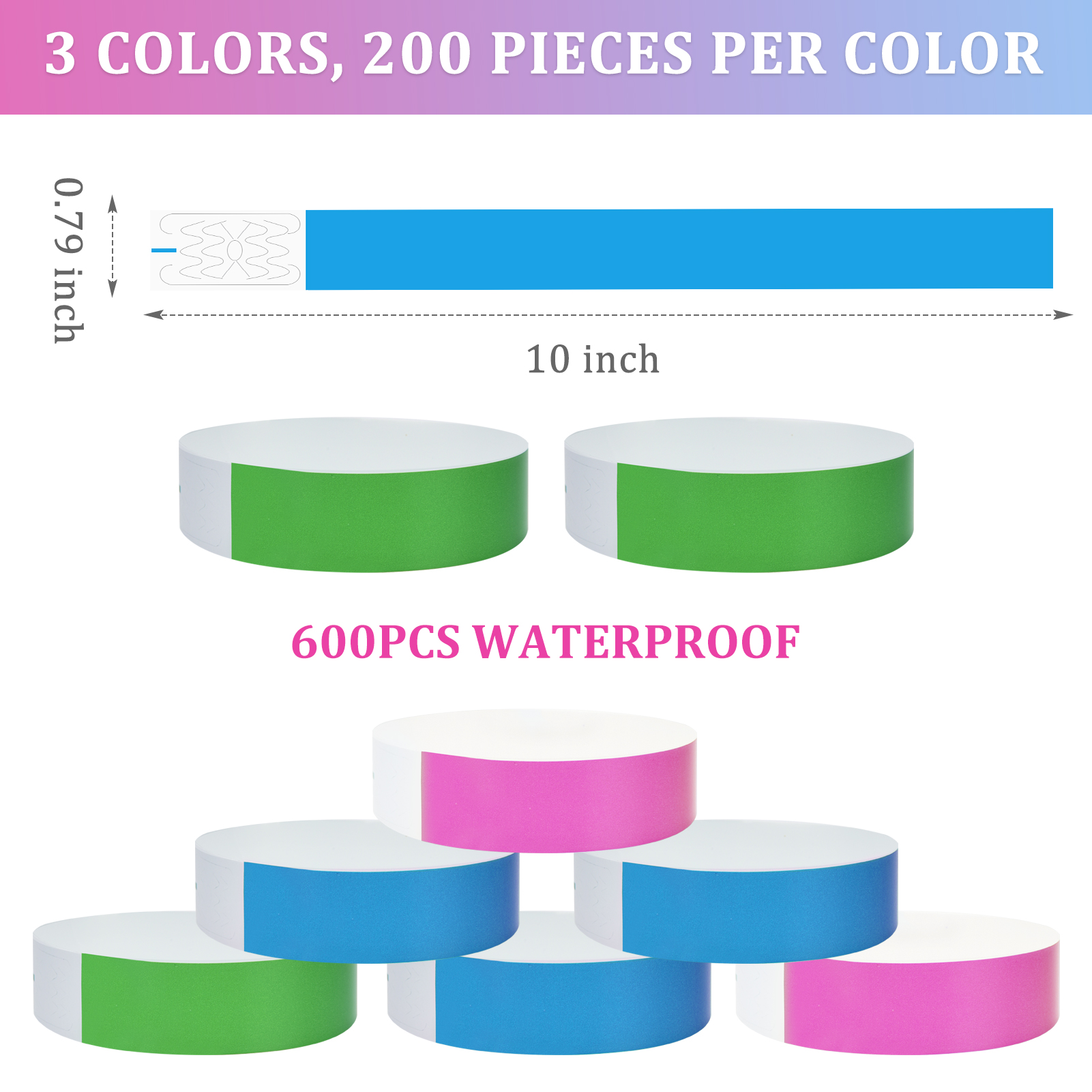 Taihexin 600 Pcs Paper Wristbands Neon Wristbands, Sticky Colorful Waterproof Wristbands for Events Party Concert Bar Entrance