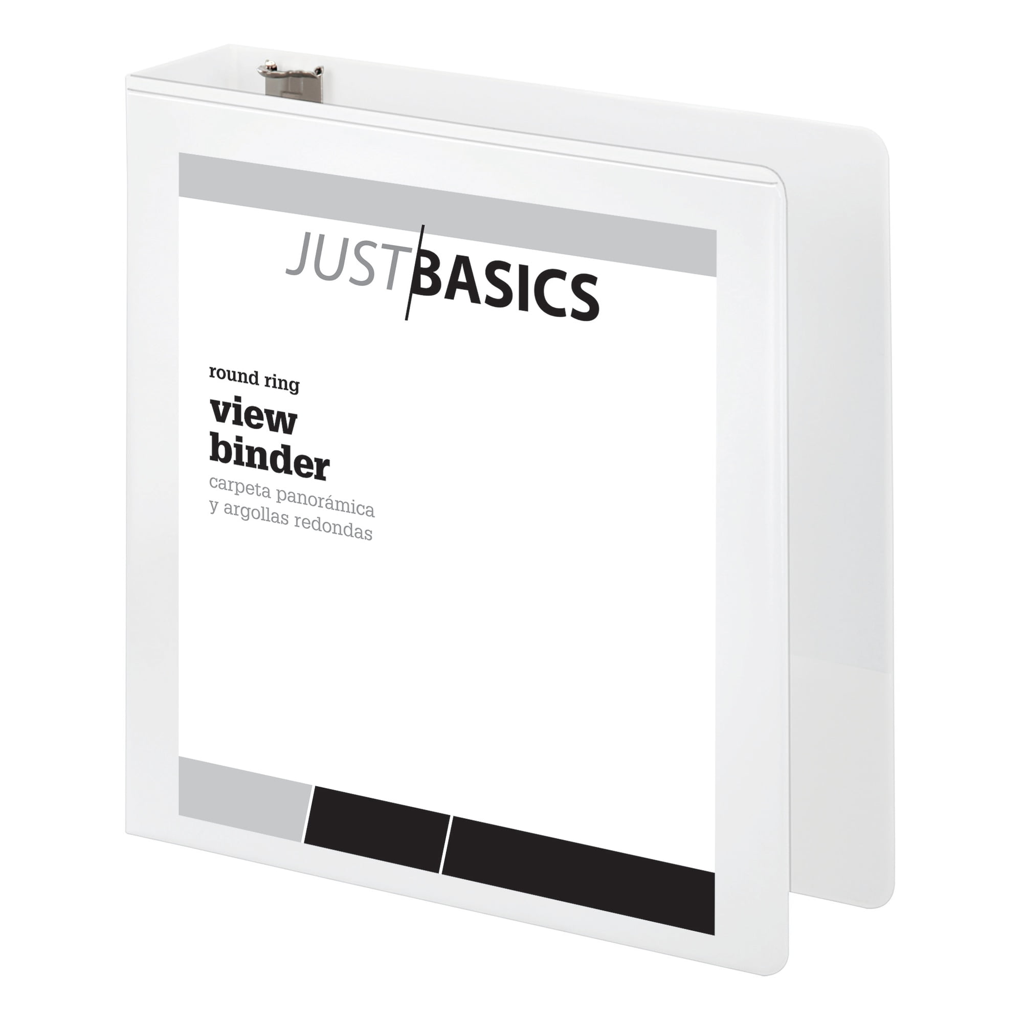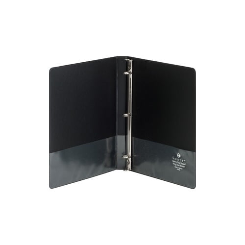 Round-ring view binder offers crystal-clear, wrinkle-free, nonglare overlays that resist toner transfer and quality no-gap rings that close securely and resist separation. For durability and resilience, the cover material and overlays are made from polypropylene with a heavy board material in the front and back covers. Steel ringlets are attached to the inside back cover instead of the spine so pages lie flat. 1/2" capacity holds approximately 125 sheets. Binder also features two clear interior pockets, a sturdy chipboard core and exposed rivets. Each pocket holds 40 sheets.