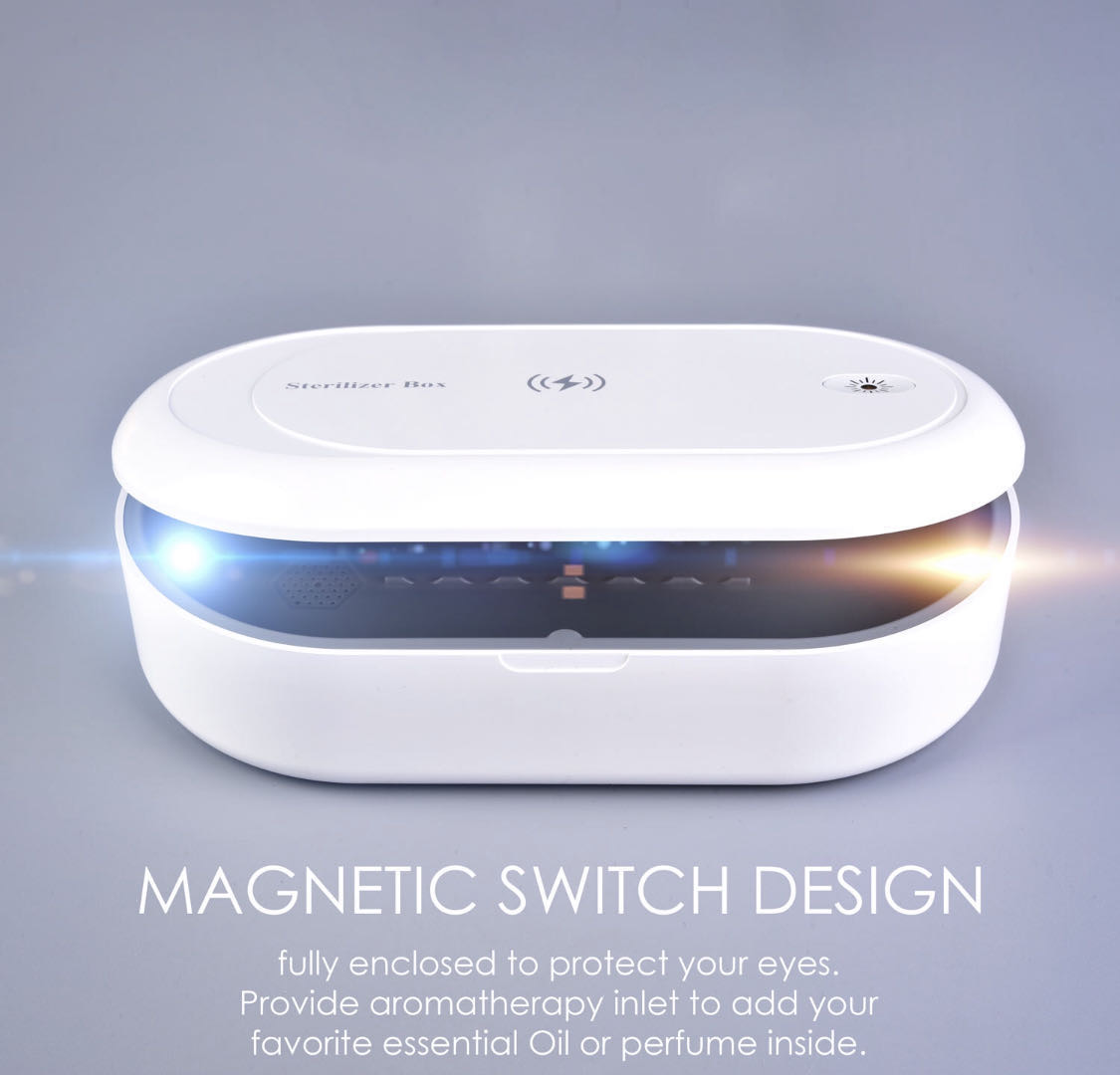 âOne button to sterilize your cell phone, mask, MP4 & Bluetooth headphones/mask/gloves/toothbrush/jewelry and small objects that fit within the box