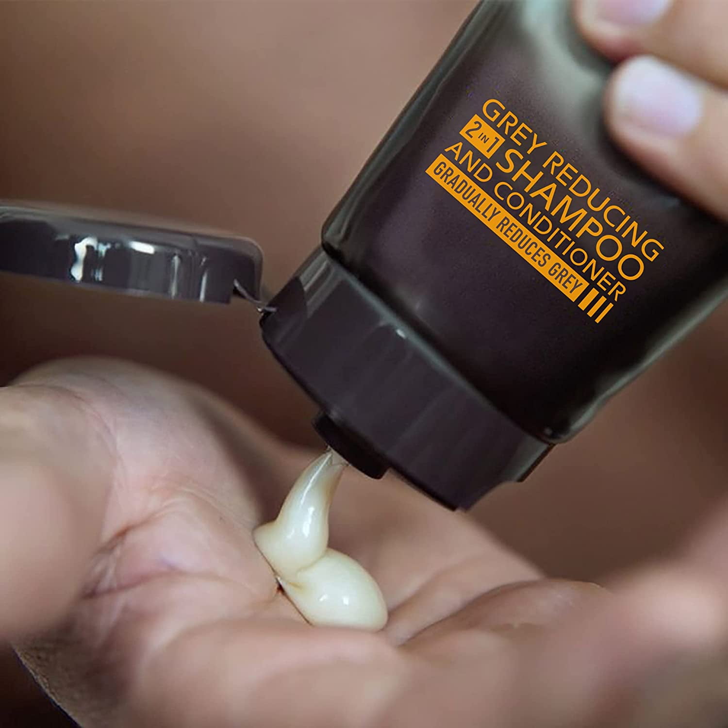 Product DescriptionControl GX is the first and only shampoo smart enough to gradually reduce greys by slowly bringing them back to their natural shade while it cleanses and conditions your hair. You get an extremely natural look – just by shampooing as you normally do. Just use it instead of your usual shampoo until you like what you see. Then use it in rotation with your usual shampoo to maintain the look you like. There’s never been an easier way to control your grey. Get the Look You Want: Use Control GX as your daily shampoo, and after the first few washes, you’ll start to see a subtle reduction in the amount of grey. Continue to use it until you reach your desired level of grey reduction (generally within 2 to 4 weeks). You can even control how gradually you get to your desired result by using it daily or every other day at the start. Keep It That Way: Once you’ve reached the level of grey reduction you like, you can reduce the frequency of use, alternating with another shampoo. In general guys use it as their daily shampoo at the start, and when they are in "maintenance mode" they use it 3 to 4 times a week.Key FeaturesThis shampoo cleans hair and reduces grey hair colorWorks as a men’s hair dyeGradually reduces grey hair colorProvides subtle, natural-looking resultsWorks on any hair colorIngredientsWater/Aqua, Disodium Lauryl Sulfosuccinante, Decyl Glucoside, Cetearyl Alcohol, Glycol Stearate, Ethanolamine, Cocamidopropyl Hydroxysultaine, Guar Hydroxypropyltrimonium Chloride, Sodium Cocoyl Isethionate, N,N-Bis (2-Hydroxyethyl)-p-Phenylenediamine Sulfate, Acetic Acid, Aloe Barbadensis Leaf Juice, Chamomilla Recutita (Matricaria) Flower Extract, 1,2,4-Trihydroxybenzene, Cetearyl Glucoside, Erythorbic Acid, Sodium Sulfite, Phenoxyethanol, Caprylyl Glycol, Stearamide AMP, Panthenol, Manganese Sulfate, p-Aminophenol, Sorbic Acid, Etidronic Acid, Fragrance/Parfum, Limonene, Linalool.WarningsDo not use this product if:- You have already experienced any reaction to haircolor products.- You have an irritated, sensitive or damaged scalp.Haircolor products can cause allergic reactions which in rare cases can be severe. If you have a tattoo, the risks of an allergic reaction may be increased. Before using this product, you must perform a preliminary 48 hour skin allergy test according to accompanying directions.In rare cases, use of hair dye has been associated with skin depigmentation (skin lightening or loss of skin color), which may be temporary or permanent. If you notice any skin depigmentation or other allergic reaction such as discomfort or severe itching, discontinue use immediately.Do not use this product at all if you have depigmentation problems such as white patches on your skin (a condition called vitiligo) or if you have a family history of skin depigmentation problems, as an allergic reaction may cause temporary or permanent loss of skin pigment.Caution – This product contains ingredients which may cause skin irritation on certain individuals and a preliminary 48-hour patch test according to accompanying directions should be done first. This product must not be used for dying the eyelashes or eyebrows – to do so may cause blindness.Keep product out of reach of children. Not for use on children.Just For Men Control GX , Grey Reducing 2 in 1 Shampoo & Conditioner 4 oz 1 ea (Pack of 2)