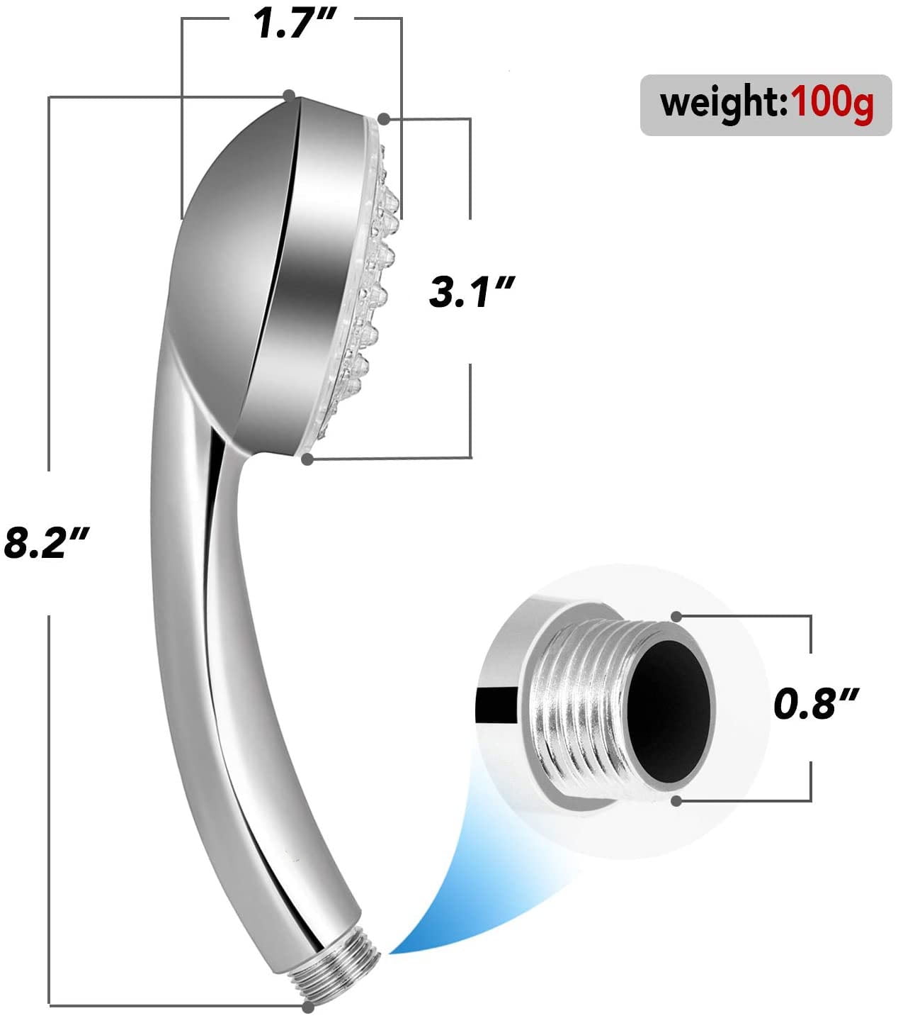 - RESISTANT &NON FADE MATERIAL: The shower head is made from ABS material with an electroplated finish. It’s resistant to corrosion and won’t fade. The product will continue to work as new for a long time. LED lights have long life of 30,000 hours, works with a wide range of water pressures from 14psi to 87psi, supports legal maximum flow rate of 2.5gpm.