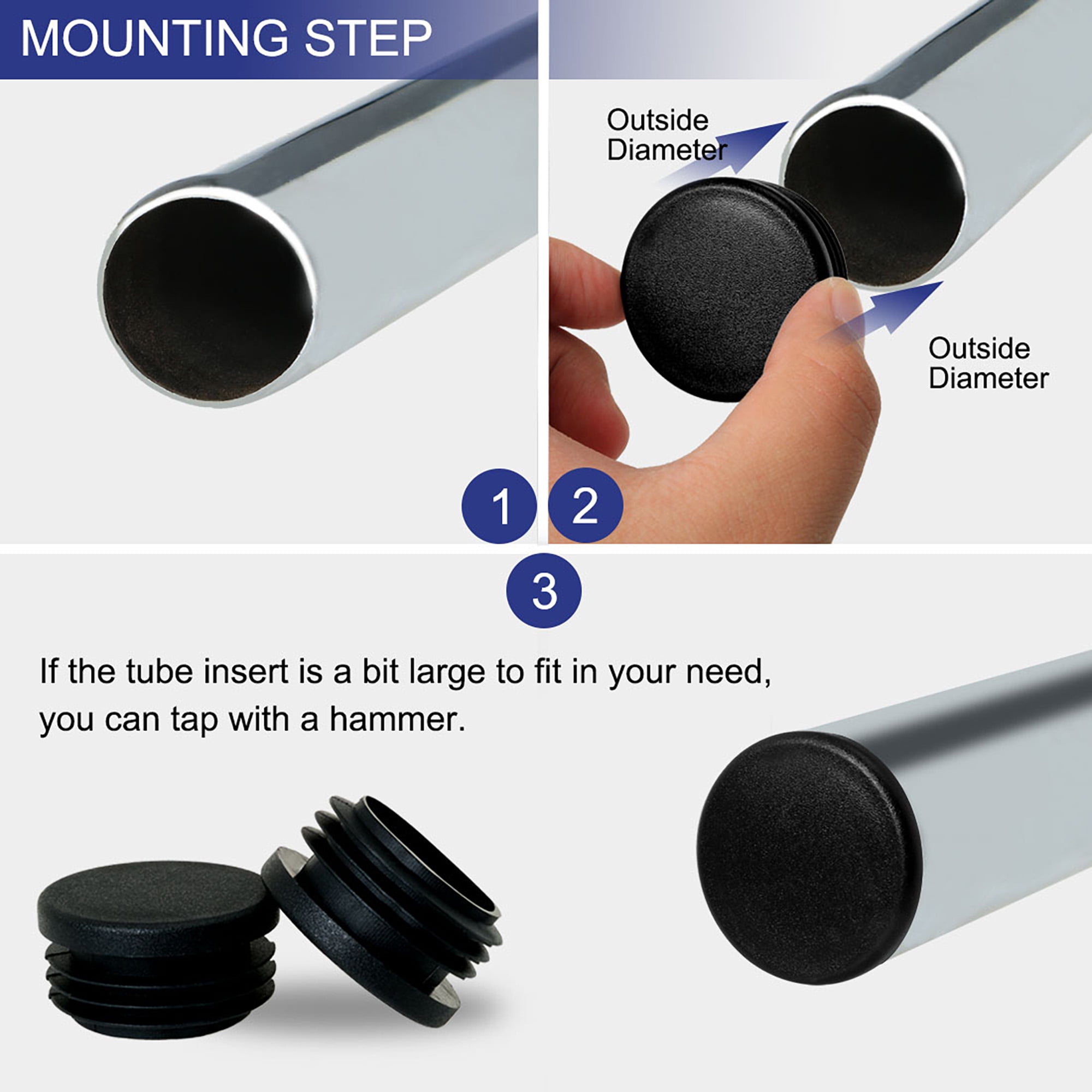 6. These strong protective tube inserts are good for tubular racks, covering sharp tubular ends, or anywhere a finished look is needed. Such as office and patio furniture, chair legs, table legs, walking sticks, ladders, shelves, metal stands, gym equipment, etc.