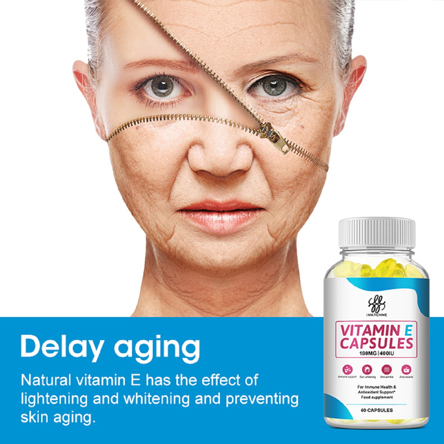 iMATCHME Vitamin E 400 IU Capsules, 180 mg per Serving – 60 Softgel Capsules