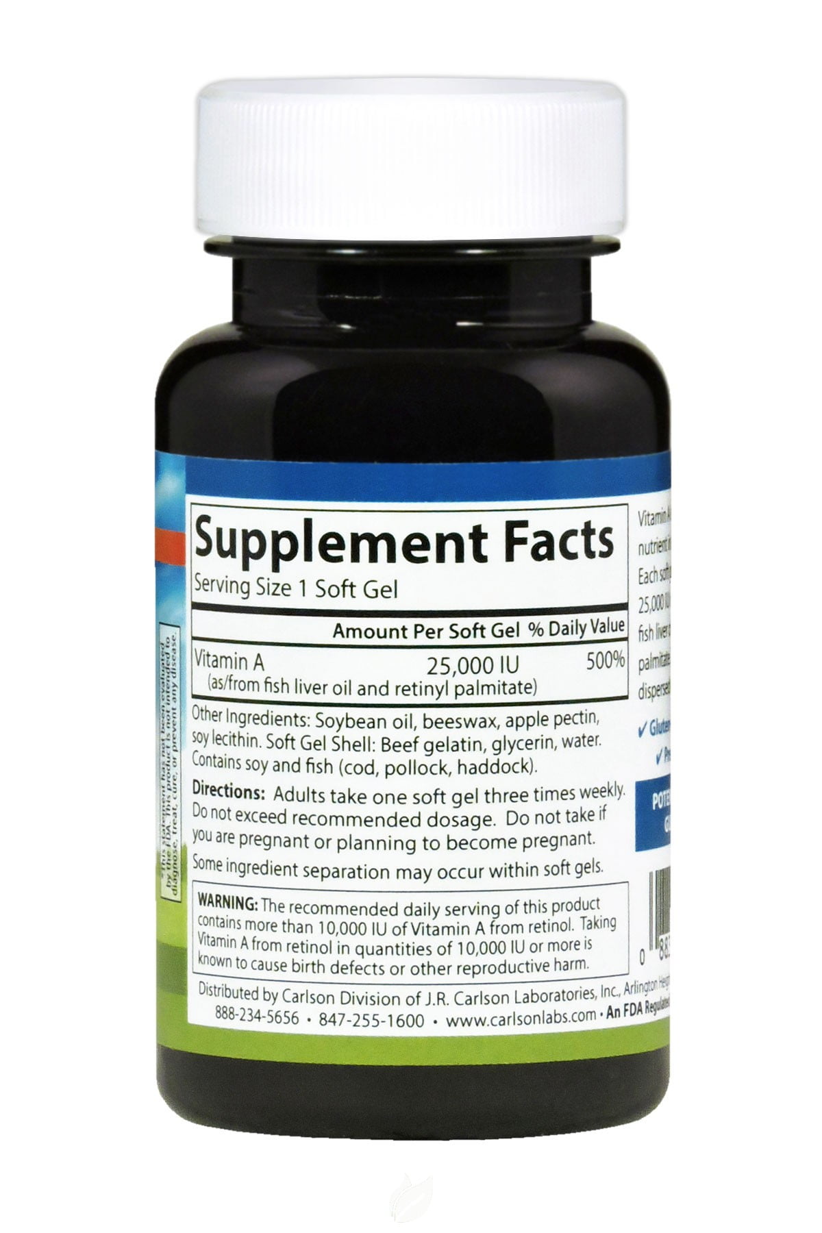 Carlson Labs Vitamin A with Pectin, 25000 IU, 100 Softgels