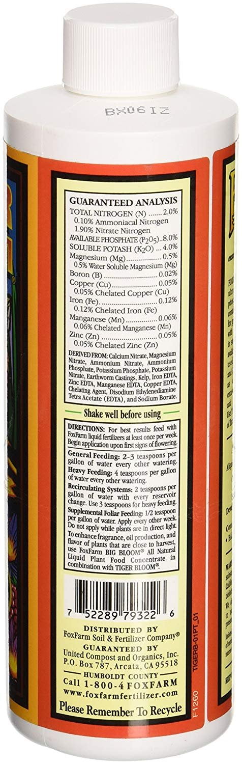 FoxFarm FX14093 Tiger Bloom Liquid Concentrate Garden Plant Fertilizer, 1 Pint