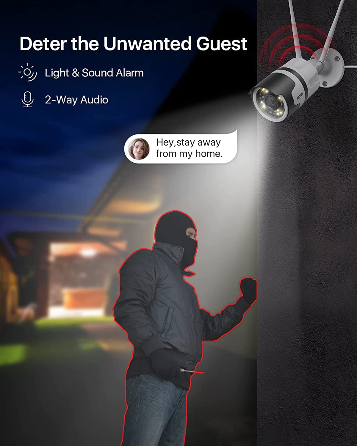 ZOSI C190 H.265+ 3MP WiFi Outdoor Security Camera with Two-Way Audio,80ft Color Night Vision,Remote Access