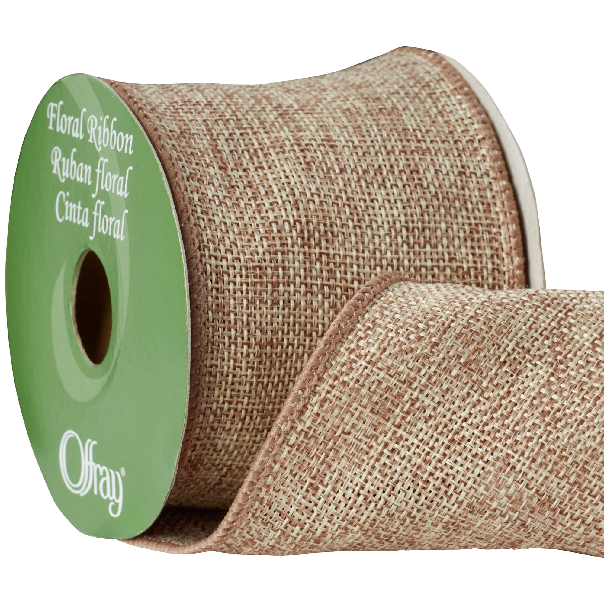 Offray Ribbon, Natural 2 1/2 inch Wired Linen-Look Ribbon, 12 feet