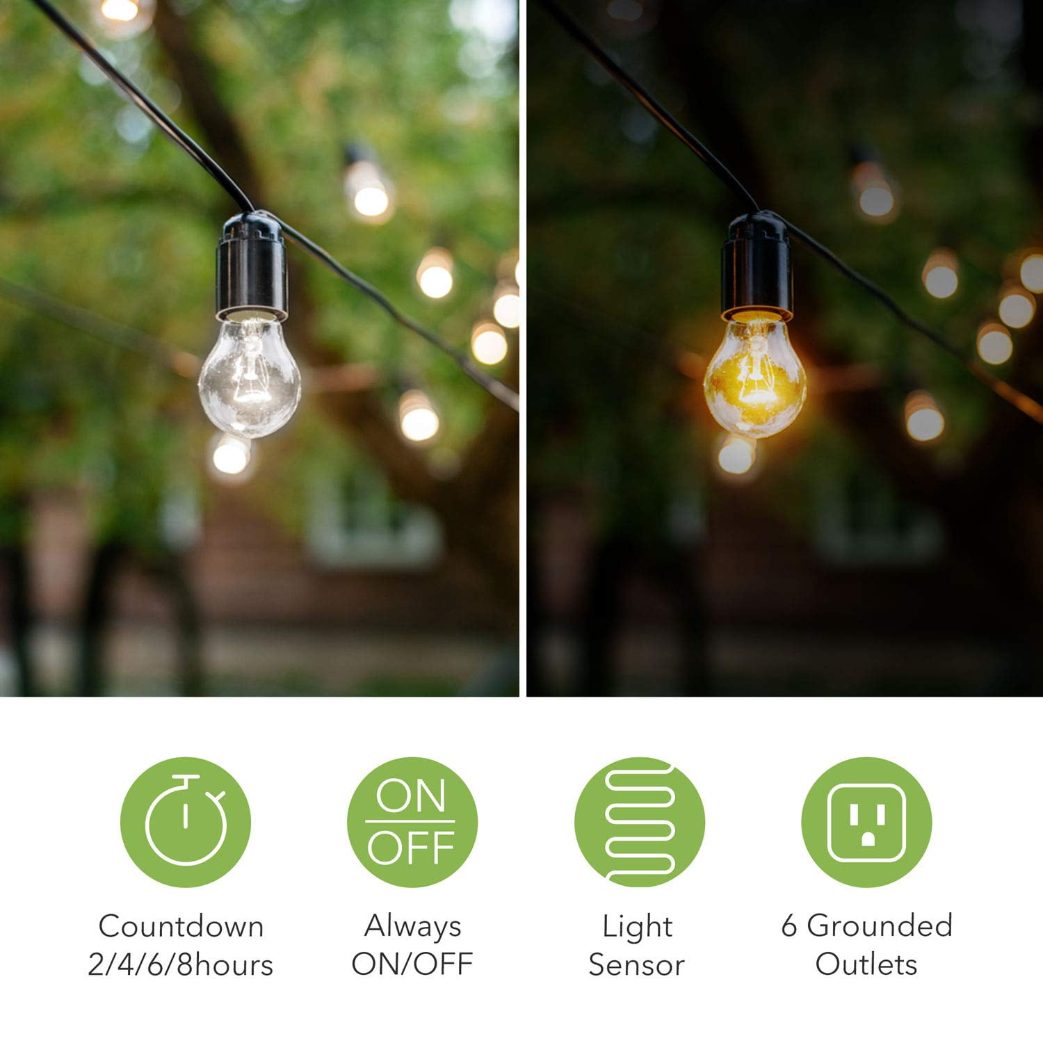 - 【SPACE-SAVING 6-OUTLET STAKE TIMER】 the yard stake timer can be plugged up to 6 devices at a time, making it a nifty space-saving solution for your multiple outdoor lighting needs in one area; comes with a 6-feet green cord that blends in with your garden