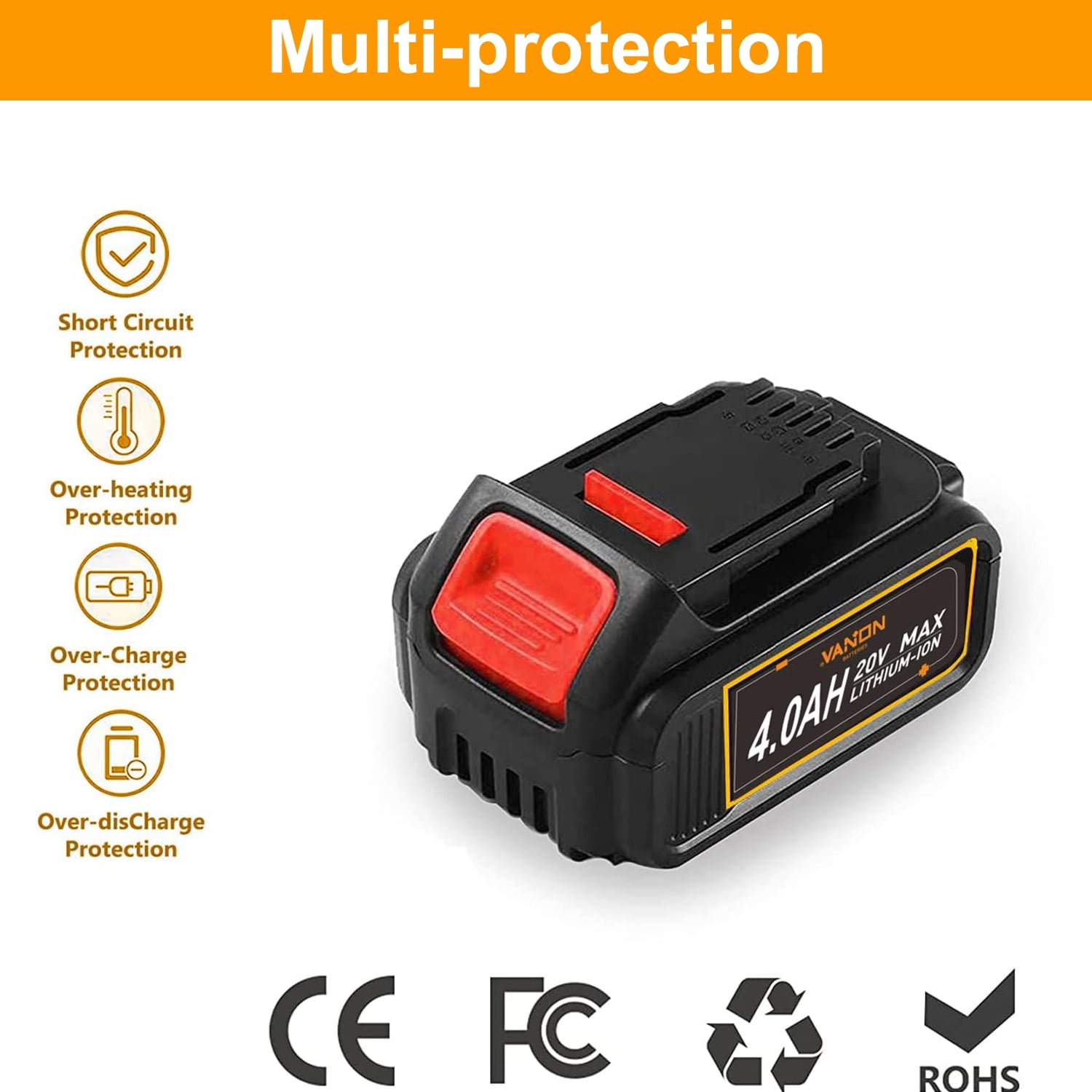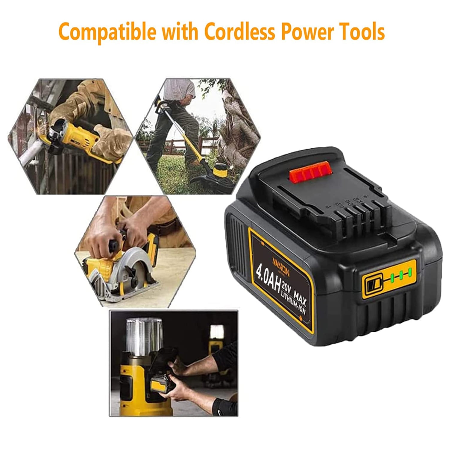 - Package included: 1X 20V Li-Ion 4000mAh Battery for Dewalt DCB204 1X User Manual