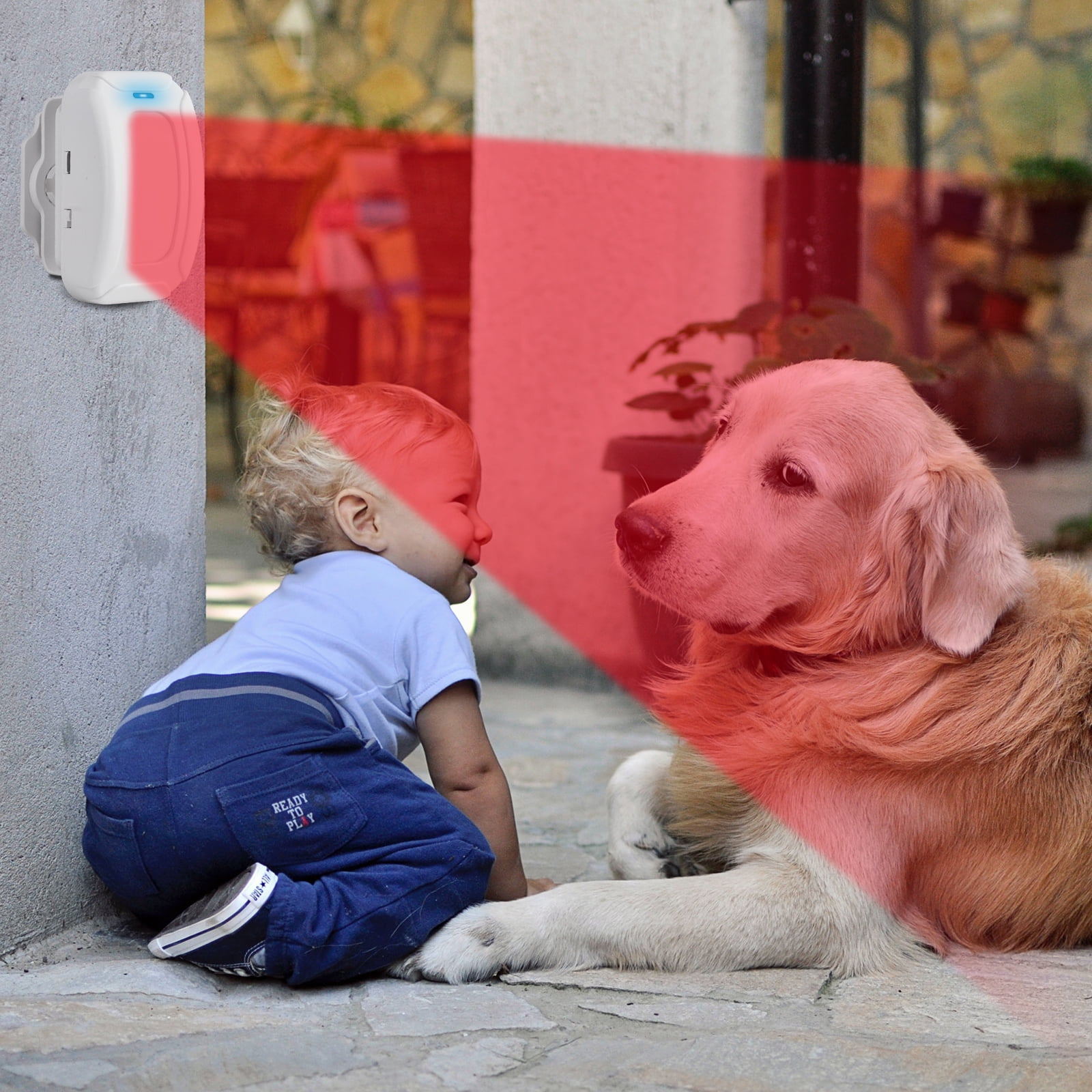4.After instllation, press the receiver ON/OFF button to enter into welcome reminder mode, test the wireless transmission distance, adjust angle of the transmitter.Try to ensure that the people come in from different position can be detected by repeating tests.