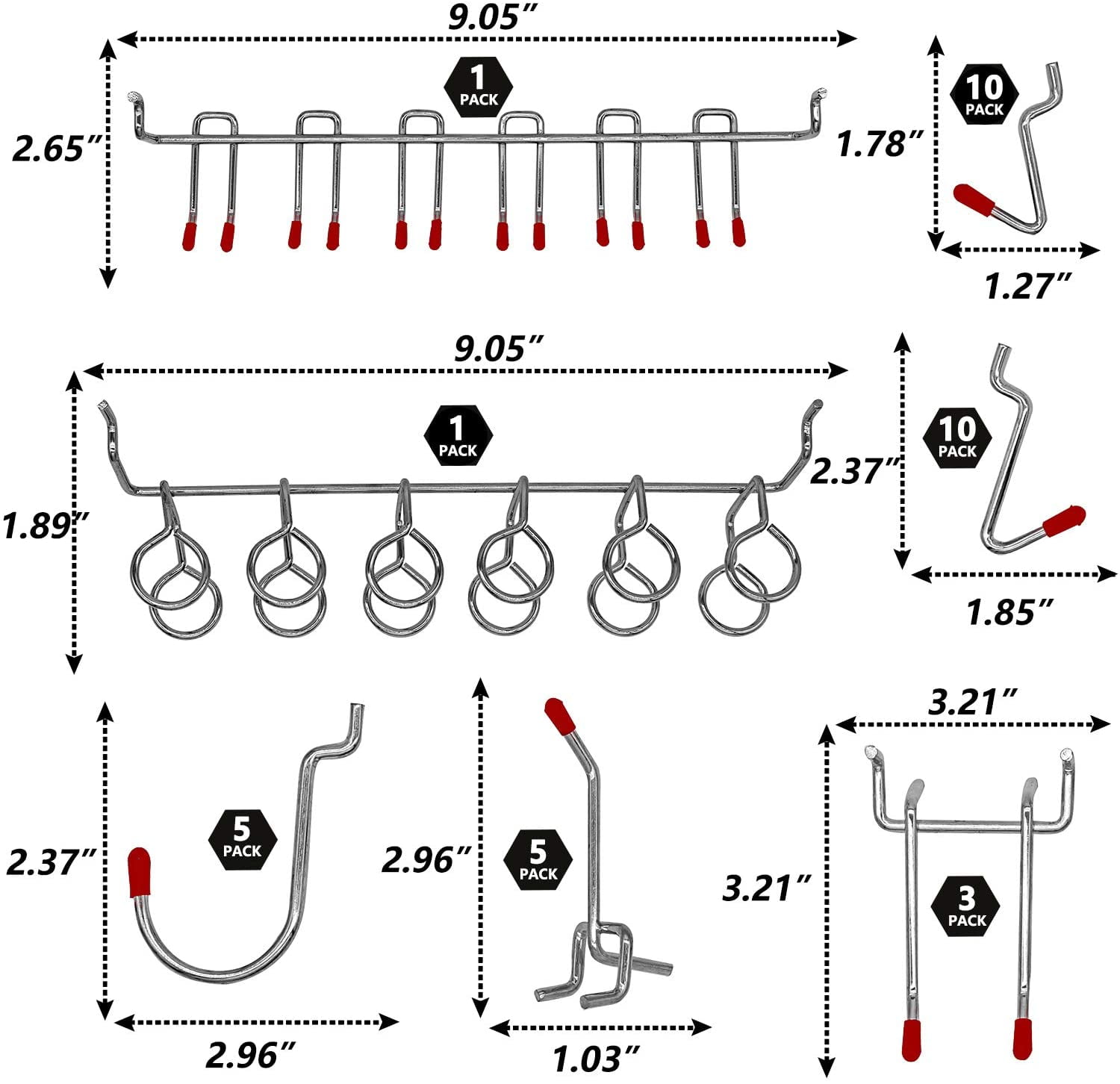 Material Made of hardened steel construction, the chrome finish provides maximum strength, resistance to rust and corrosion. Suitable for 1/8- and 1/4-inch pegboards with 1-inch spacing. Ensure durability.