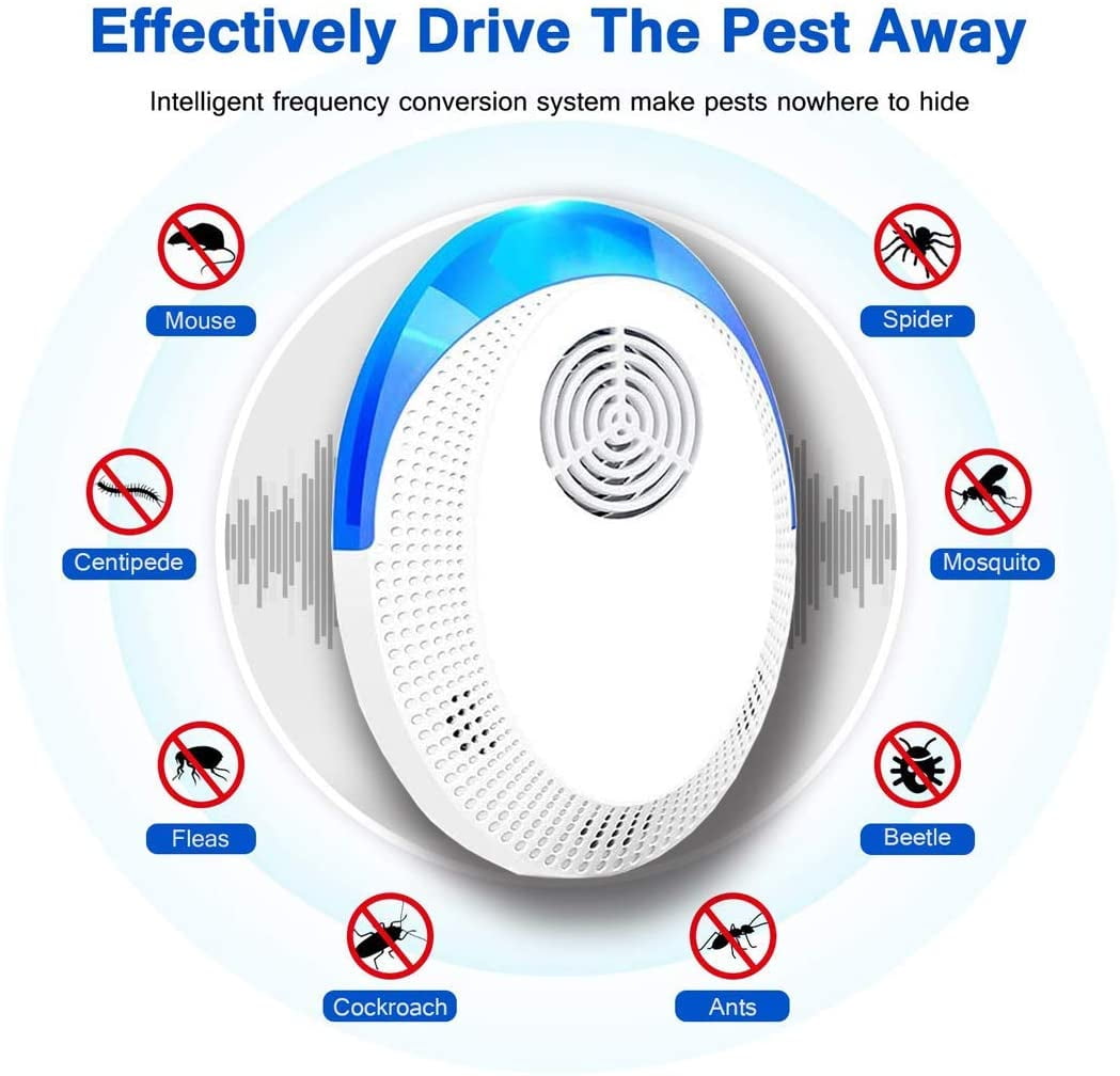 The electronic and ultrasonic pest repeller is safe for pregnant woman and baby. Ultrasonic sound is inaudible to humans and pets, it can replace dangerous poisons and chemicals. No Toxic, No Chemical, No Poisons, No Radiation, and No need to clean up dead pests, no battery required and cost little electricity.This ultrasonic pest repellent can give you a 100% Safety and Eco-friendly home.