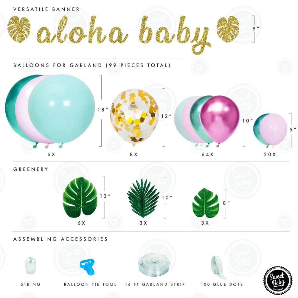 Flamingo Tropical Jungle Baby Shower Decorations Balloon Garland Arch Kit with Pink Green Balloons