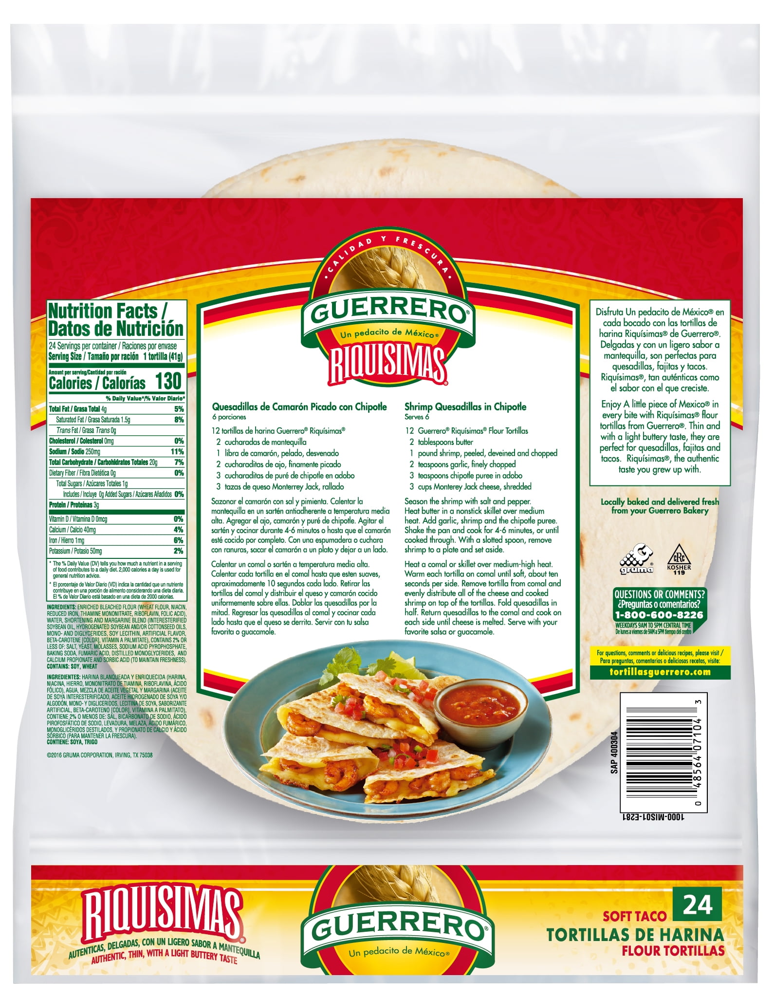 Guerrero Riquisimas Soft Taco Flour Tortillas, 35 Oz, 24 Count