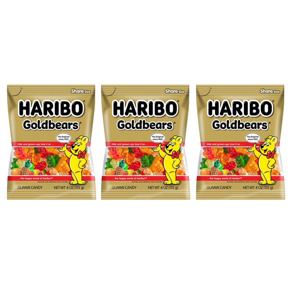 3 Bags Original Haribo Gummy Bears Chew Goldbears Chewy Candy Gummi Fruit Snack