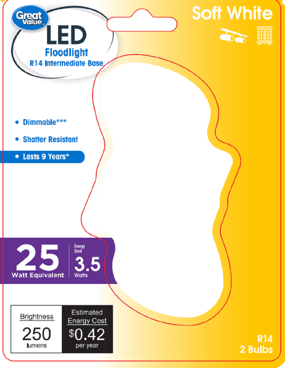 Great Value LED 3.5 Watts Soft White Directional R14 Intermediate Base Bulbs, 2 count