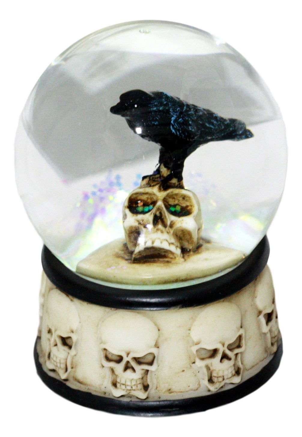 Ebros Small Day Of The Dead Edgar Allan Poe Raven Perching On Skull Glitter Water Globe Collectible Figurine 3.5’Tall