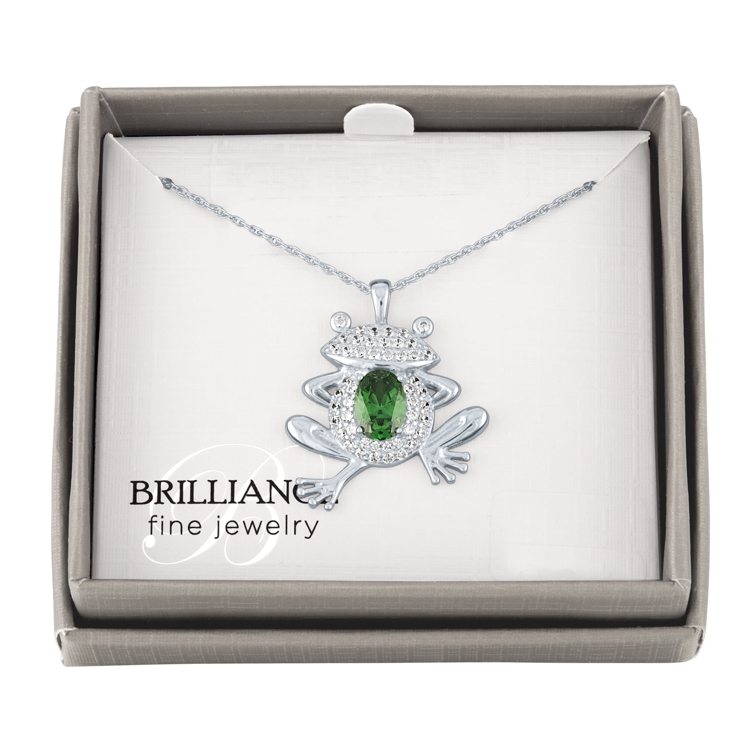 Brilliance Simulated Emerald and CZ Sterling Silver Frog Pendant, 18′