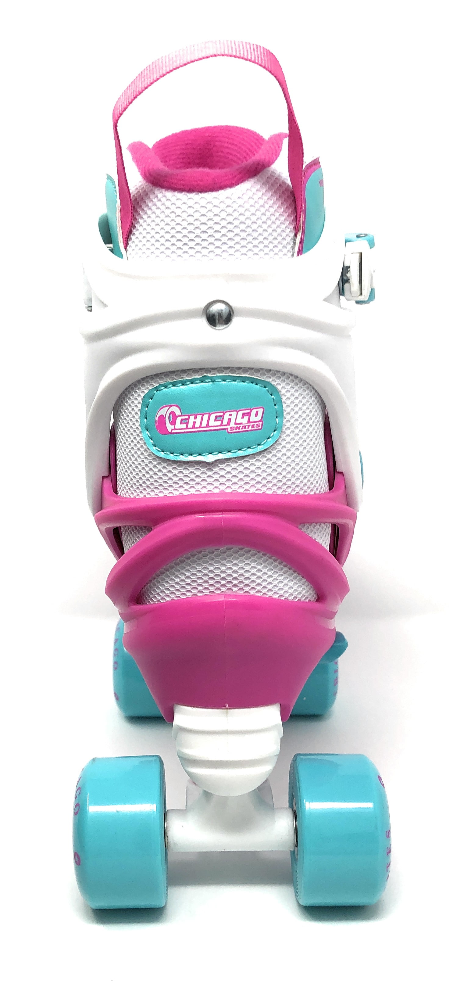 Chicago Skates Girls Adjustable Junior Quad Roller Skates – Pink, White, Teal