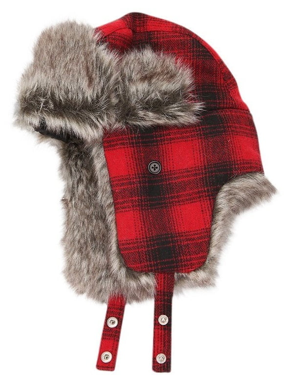 Urban Outfitters Wool & Faux Fur Buffalo Plaid Winter Trapper Aviator Hat